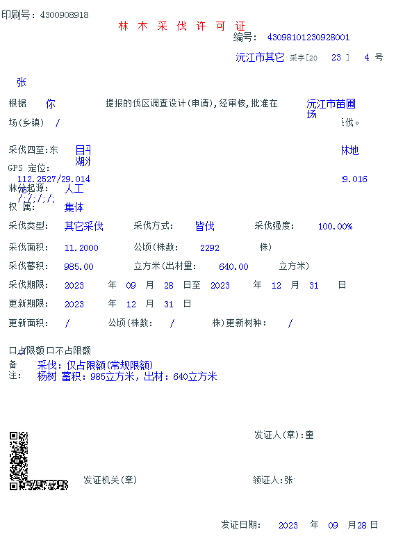林业行政许可决定书【2023】第028号