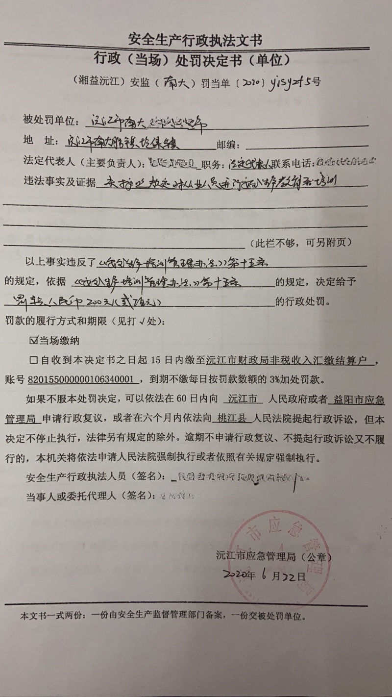 沅江市南大好一家超市行政(当场)处罚决定书(单位)