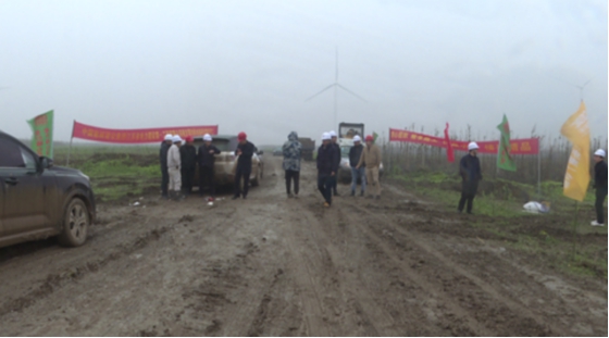 冬日的龙潭沟,寒风凛冽,而在风力发电项目建设现场却是一派繁忙景象,工人们在工地上来回忙碌,挖掘机紧张作业,争取项目的尽早建成。