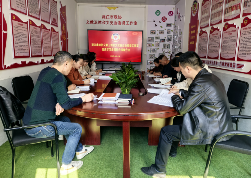 3月19日,沅江市政协副主席谢丽君组织文教卫体和文史委委员开展集中学习活动,深入学习习近平总书记关于加强文旅融合的重要论述以及全国两会精神,并传达省、市政协会议精神。此次学习活动旨在提升委员们的政治素养,强化履职能力,更好地为地方发展建言献策。
