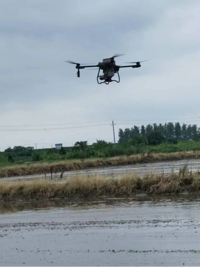 (高科技无人机正在虾田播撒稻种)