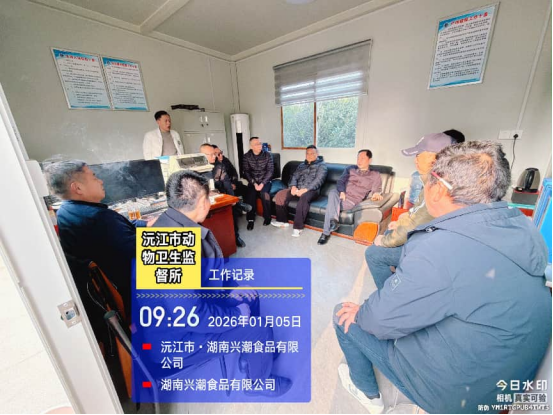 2026年1月5日,曾军副主任赴沅江市动物疫病预防控制中心(动物卫生监督所)驻湖南兴潮食品有限公司开展安全生产指导。