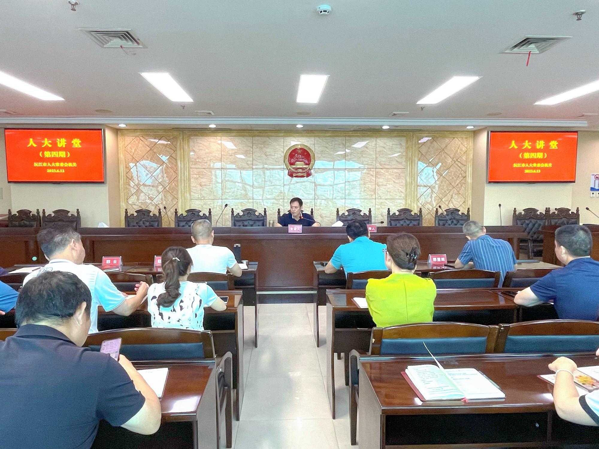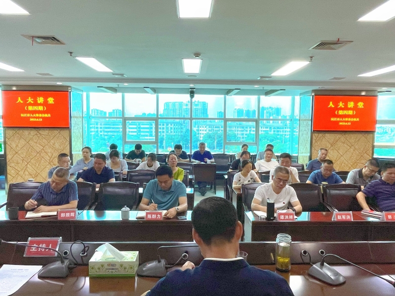 6月12日上午,市人大2023年第四期人大讲堂开讲,市人大常委会副主任赵军洪授课,市人大常委会党组副书记、副主任谭洪祥主持。
