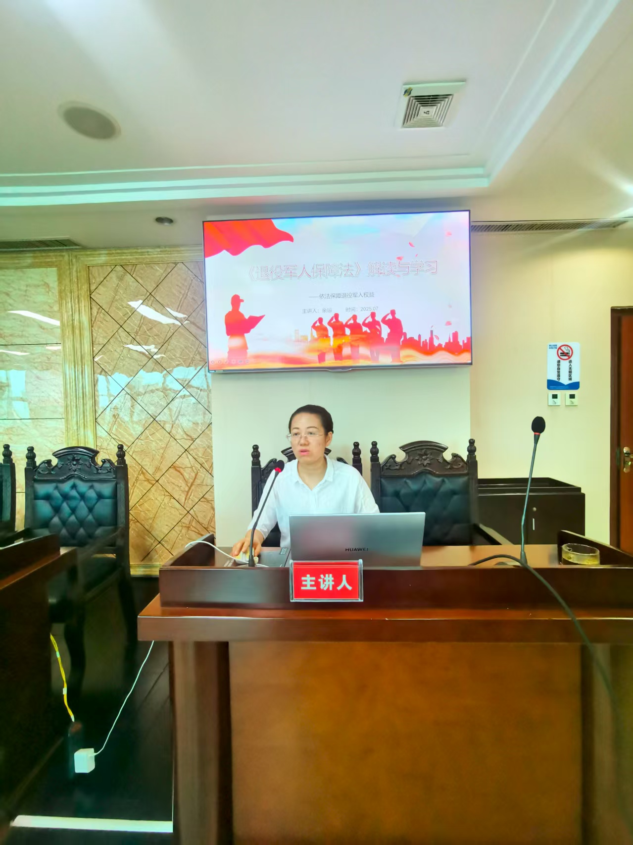 余琼以《中华人民共和国退役军人保障法》解读与学习为主题,从《中华人民共和国退役军人保障法》的立法背景、总体思路、主要内容、如何更好地贯彻《中华人民共和国退役军人保障法》四个方面进行了介绍和说明。《中华人民共和国退役军人保障法》明确了退役军人工作的基本原则、规范了退役军人的移交接收、创新了退役军人教育培训、加大了就业创业扶持力度、完善了管理和监督制度。