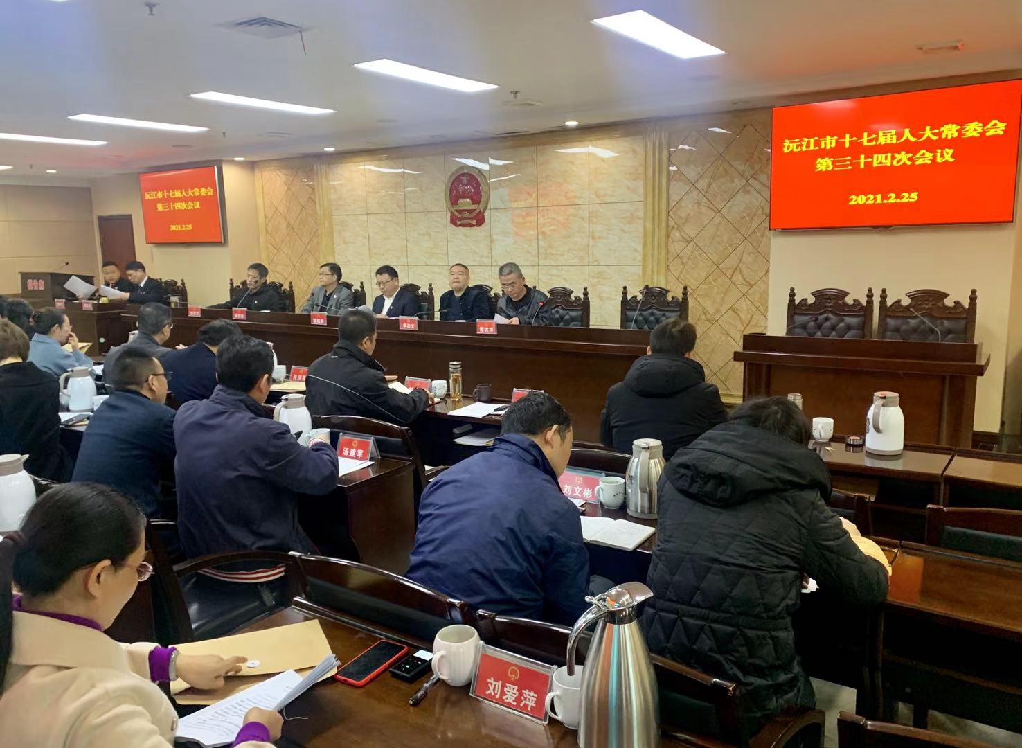 2月25日,市十七届人大常委会第三十四次会议召开。市人大常委会主任雷越毅,副主任李志文、周新秋、谭洪祥、赵军洪,市人大常委会组成人员出席会议。会议由谭洪祥主持。市人民法院院长邹兆洲,市人民检察院检察长刘德芳列席会议。