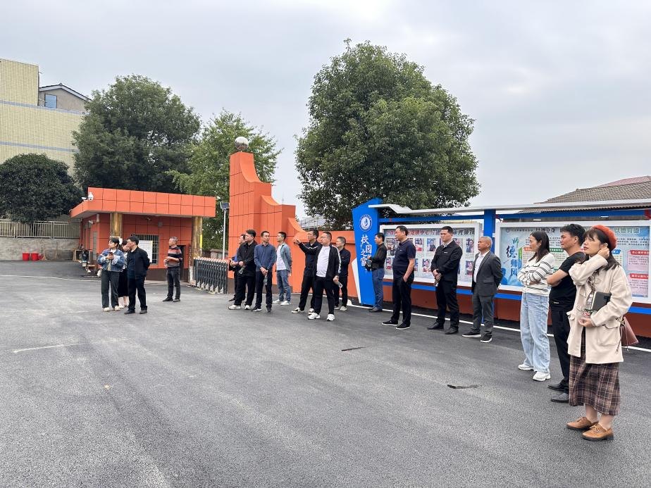 调研组一行先来到新湾镇中心校实地考察,中心校校长在现场陪同介绍,代表们了解学校的基础设施建设、办学质量和师生风貌等情况。