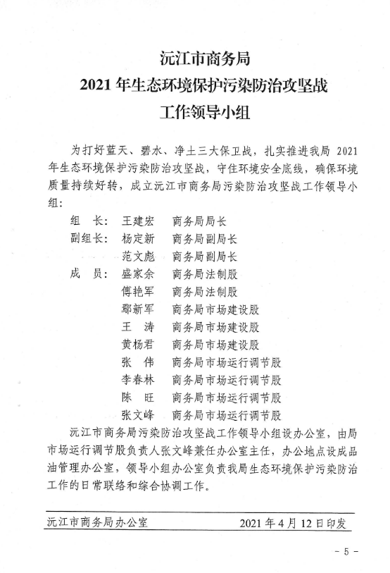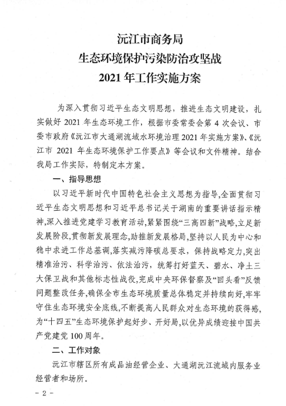 关于印发《沅江市商务局生态环境保护污染防治攻坚战2021年工作实施方案》的通知