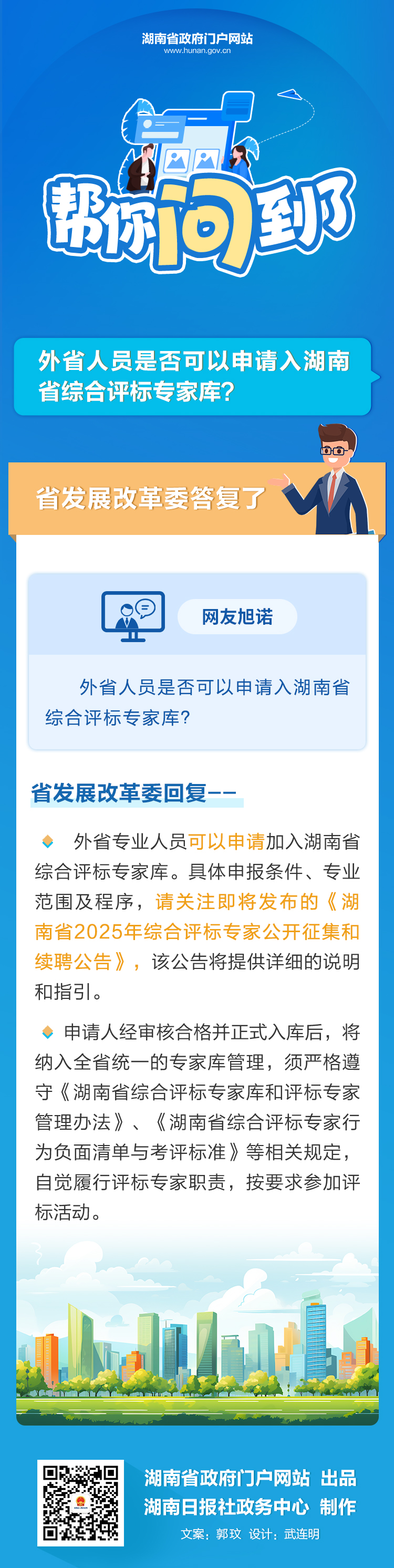 省外人员是否可以申请入湖南省综合评标专家库?帮你问到了!