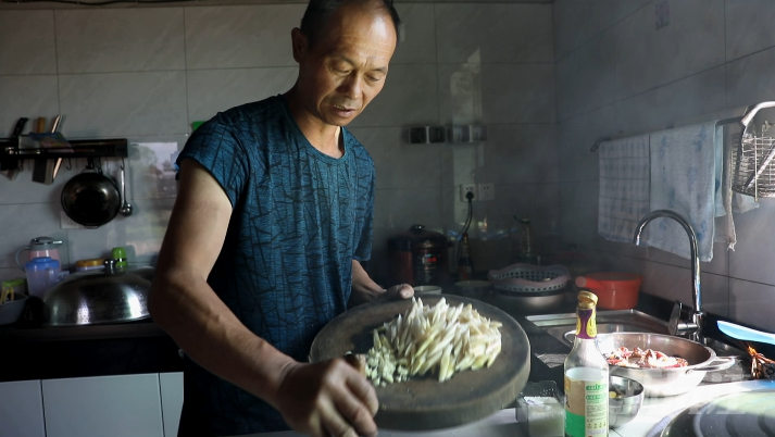 时近正午,臧波将刚采的藕根细细切段,热油轻炒间清香四溢。专程从益阳返乡探亲的兄长臧明灿和家人们端坐在枇杷树下,一桌子的美食,却频频夹起白皙的藕根。