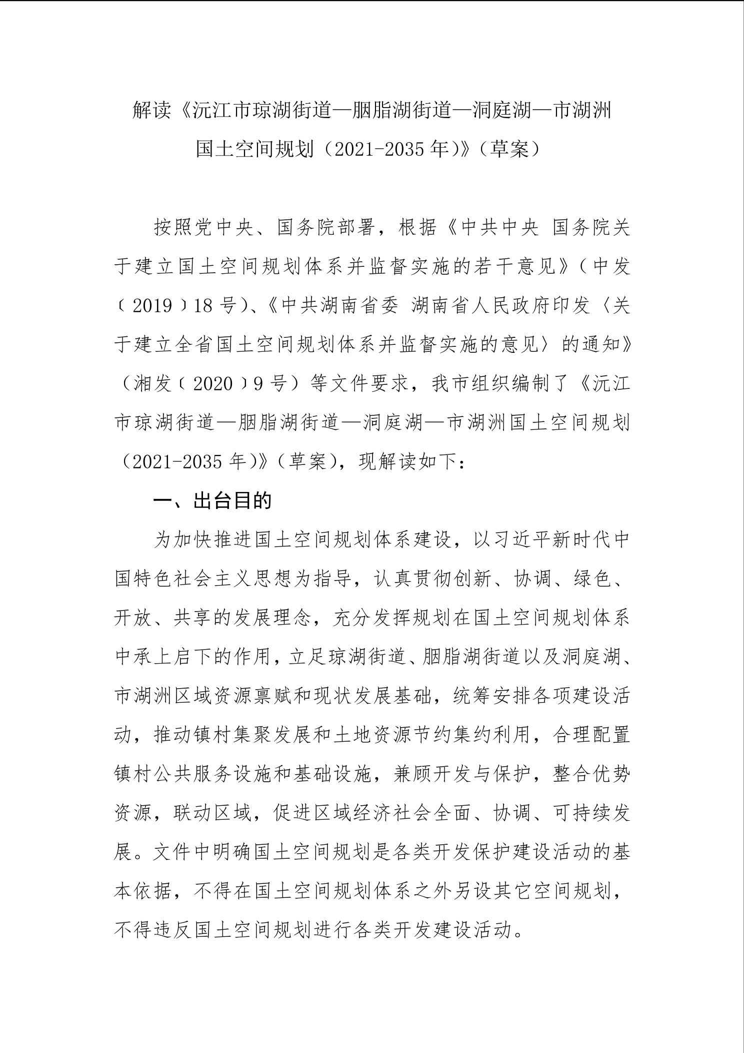 沅江市琼湖街道—胭脂湖街道—洞庭湖—市湖洲国土空间规划(2021-2035年)公示
