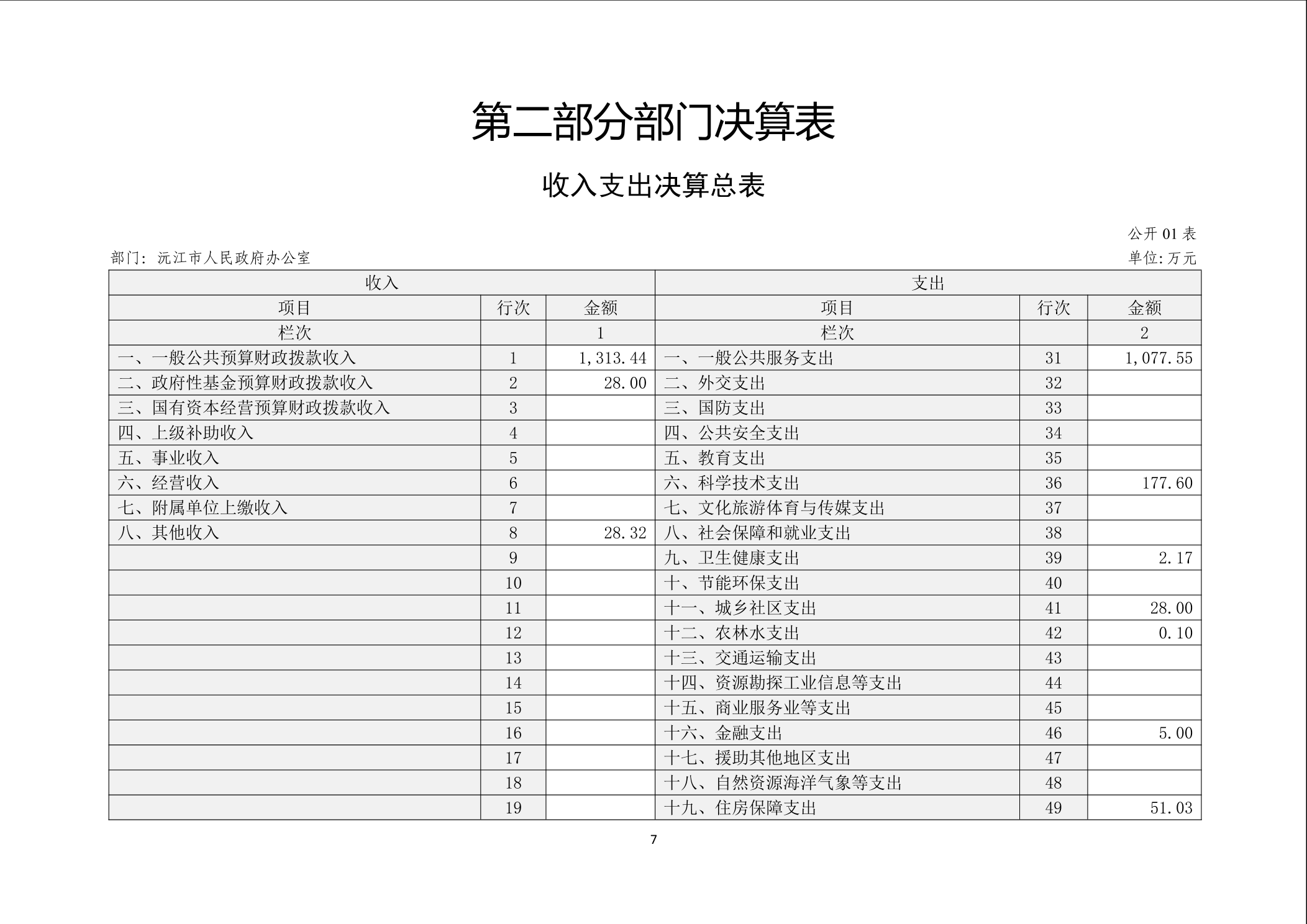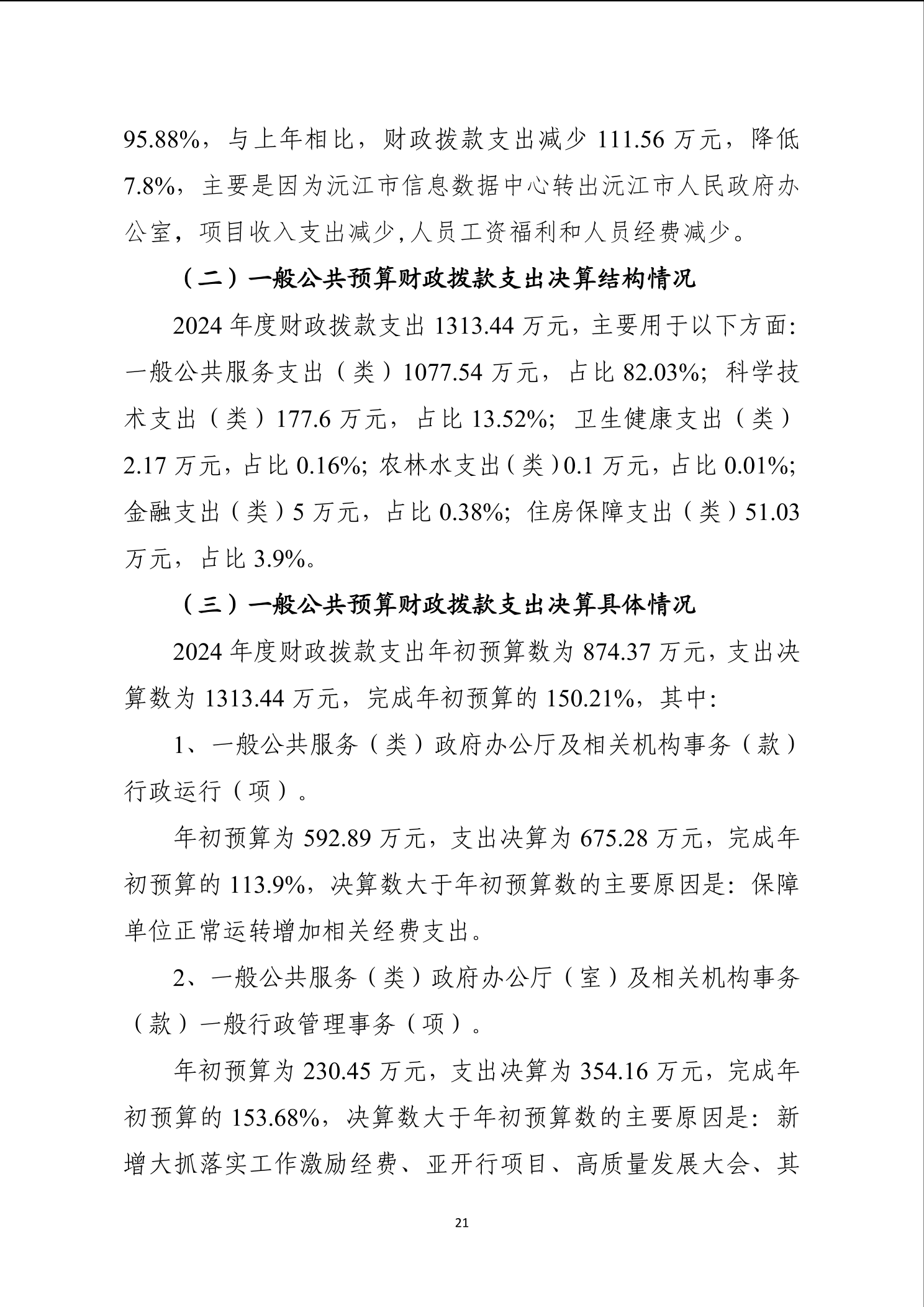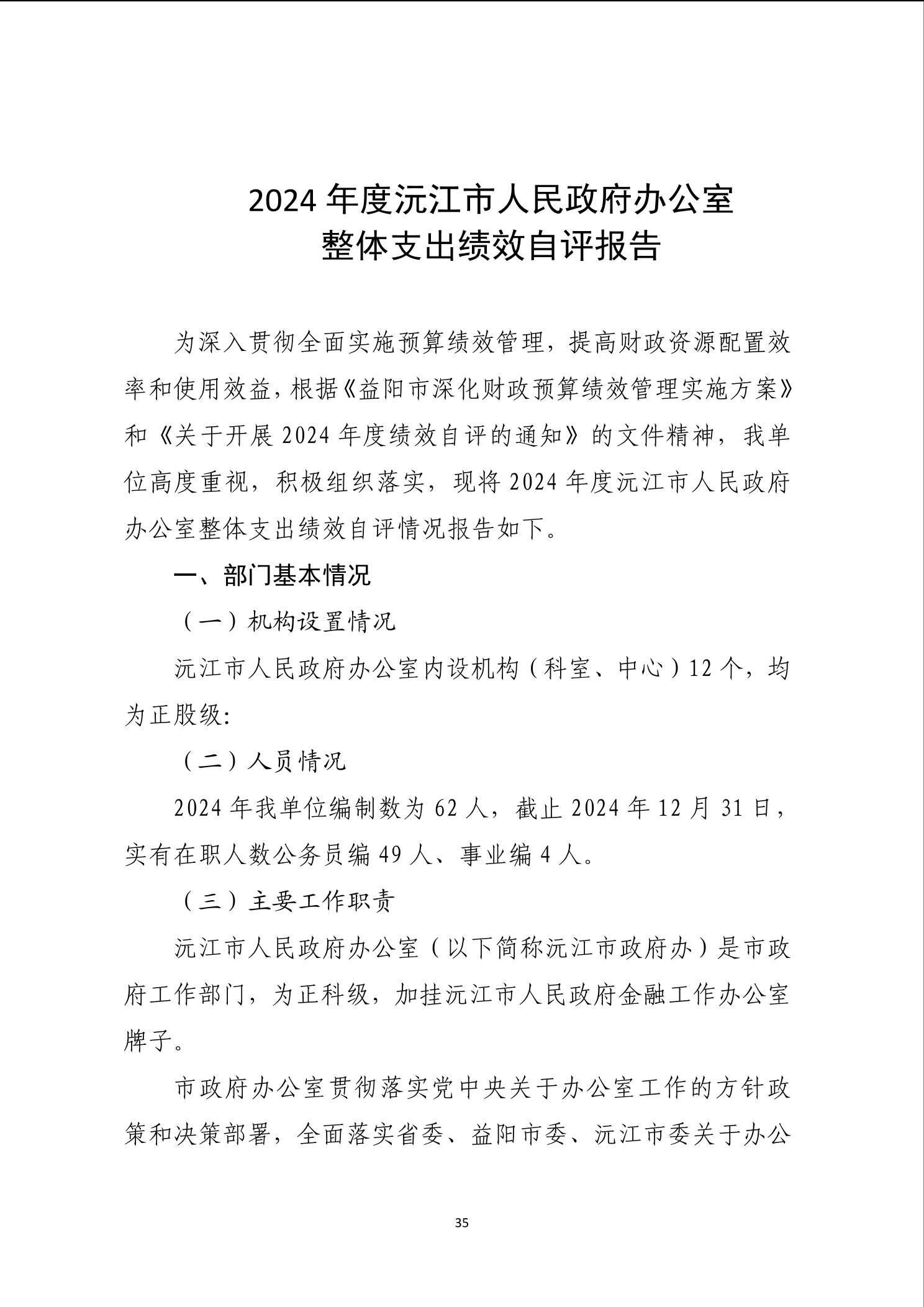 2024年度沅江市人民政府办公室部门决算公开