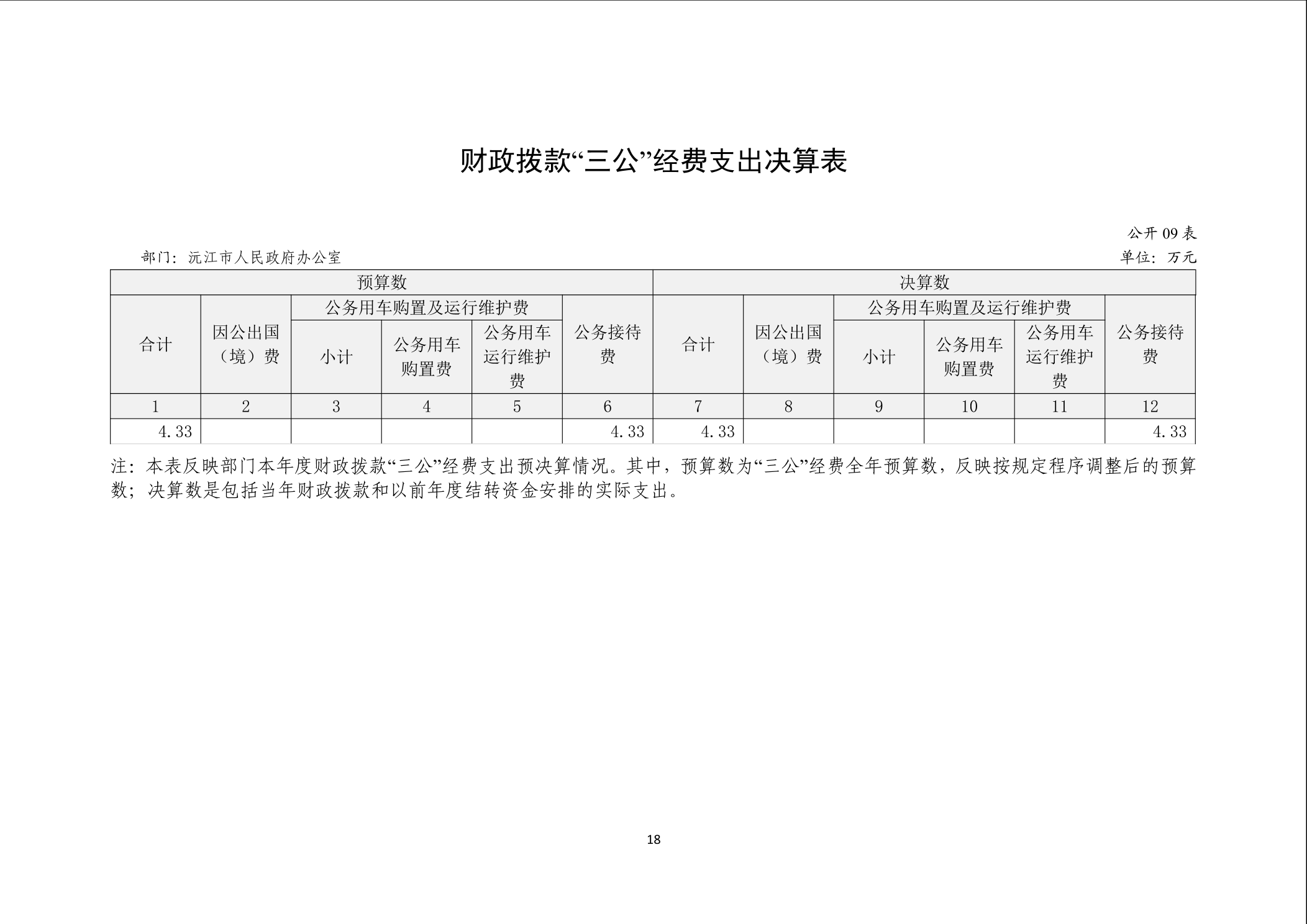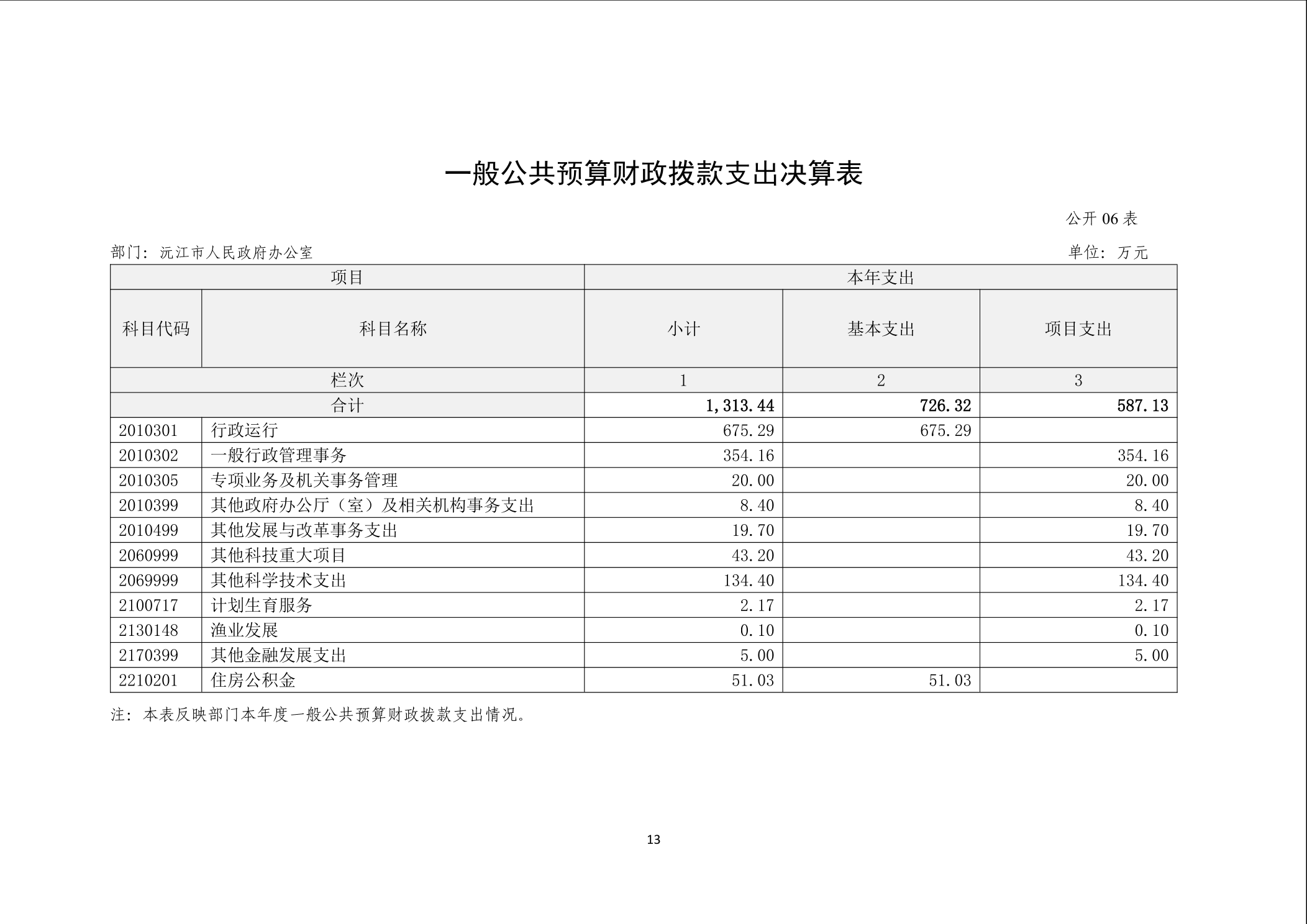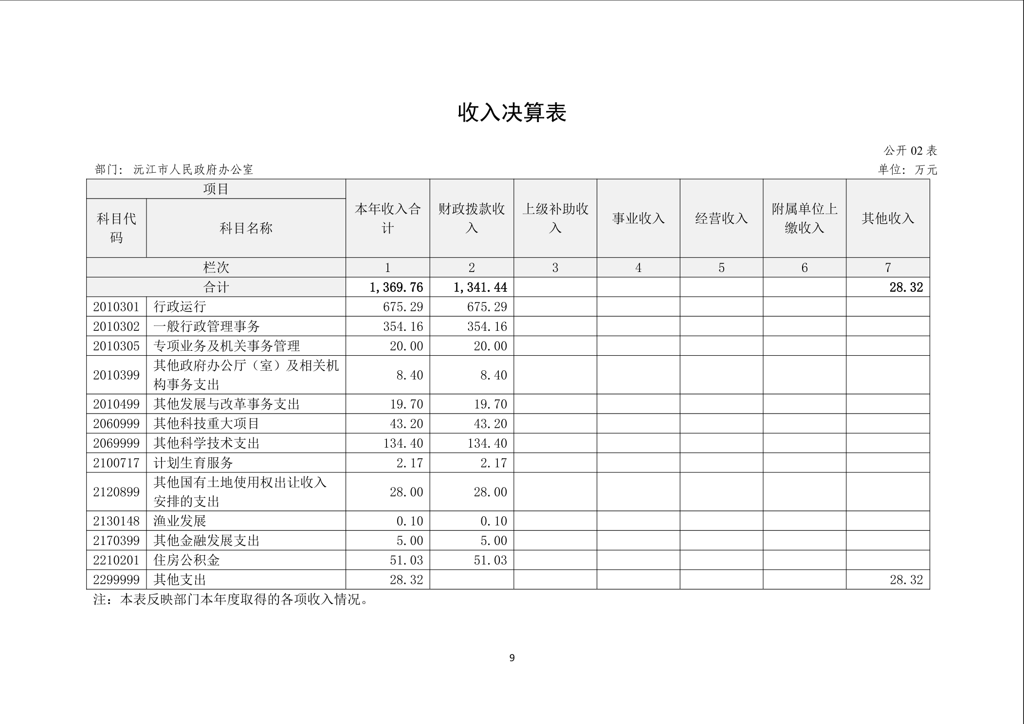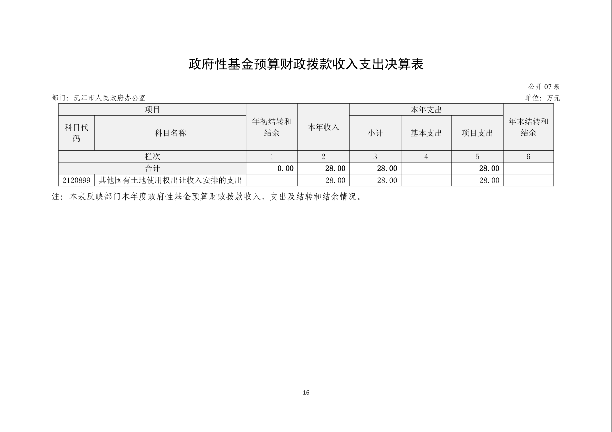 2024年度沅江市人民政府办公室部门决算公开