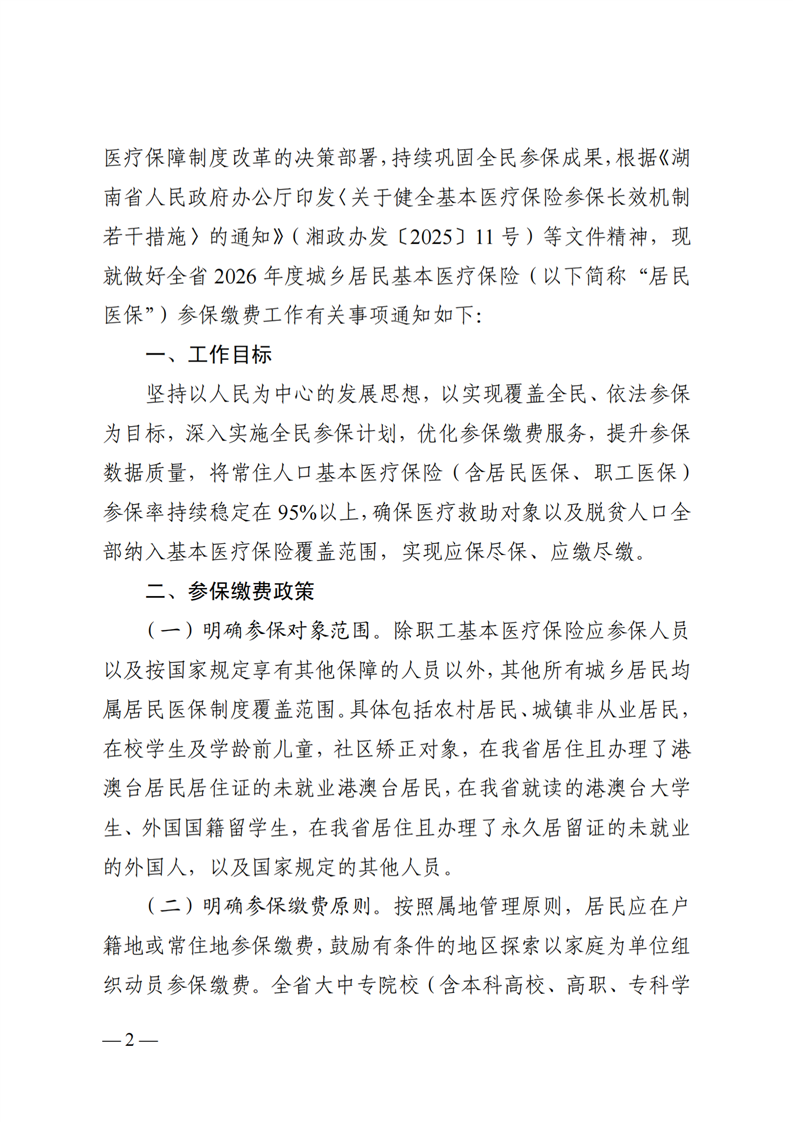 《湖南省关于做好2026年度城乡居民基本医疗保险参保缴费工作的通知》