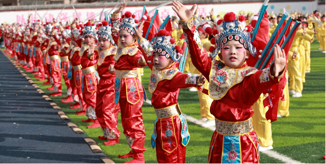 各年级特色节目接续登场,其中《英姿飒爽,乘风少年》成为全场焦点:小演员们身着传统服饰,将戏曲的韵味与传统武术的刚劲巧妙融合,一招一式刚柔并济,既展现了中华优秀传统文化的魅力,又彰显了少年昂扬向上的精气神,引得现场掌声、喝彩声此起彼伏。表演落幕,一二年级亲子运动会同步启幕,足球射门、迎面接力等趣味项目中,家长与孩子默契配合、同心协力,奔跑身影与爽朗笑声交织,定格家校共育的温馨瞬间。