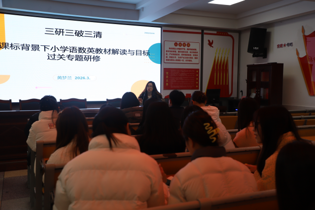 培训会上,桔园学校教学副校长黄梦兰首先作了题为《三研三破三清——新课标背景下小学语数英教材解读与目标过关》的专题分享。她深入浅出地剖析了在新课程标准理念下,如何精准解读教材、科学制定并落实课堂教学目标,为新教师们提供了宝贵的实操指南。