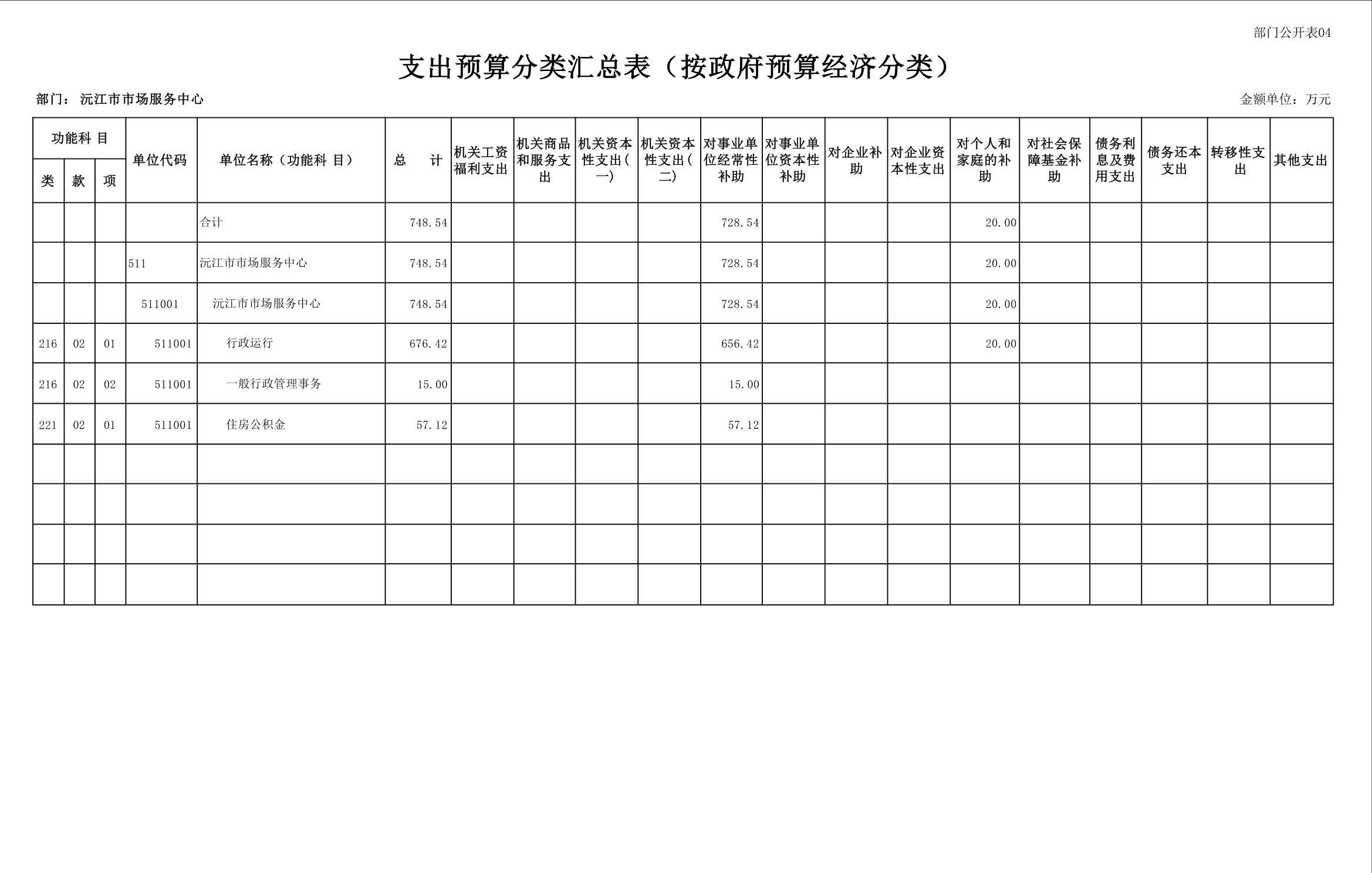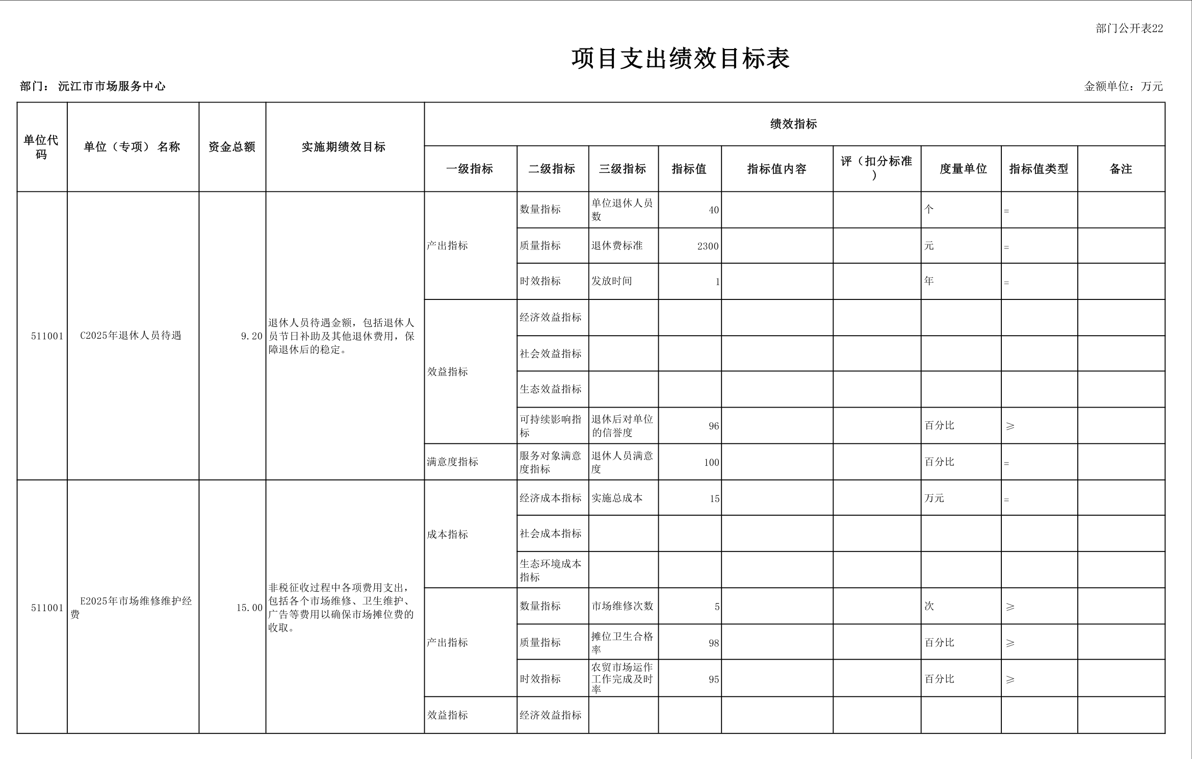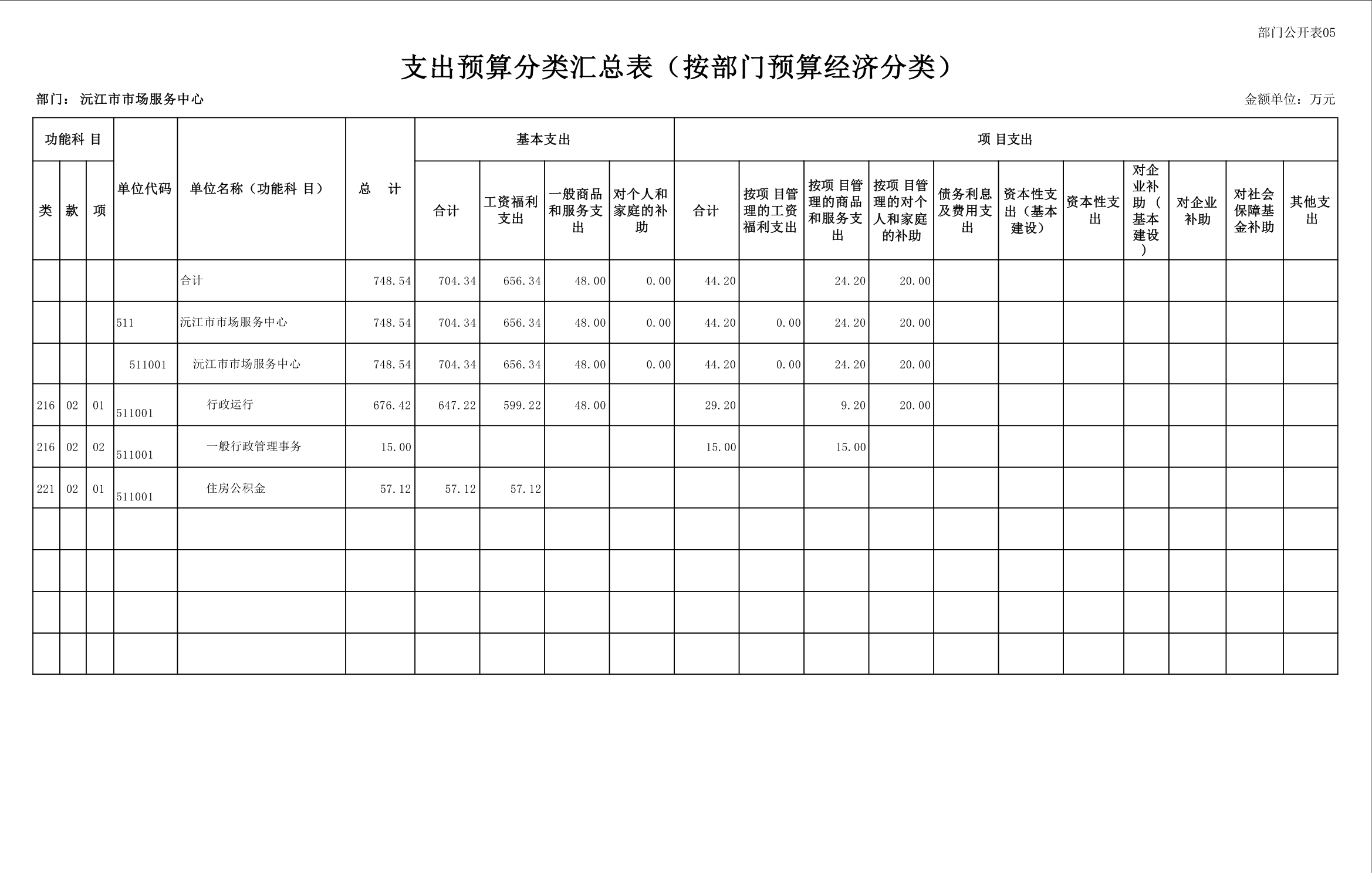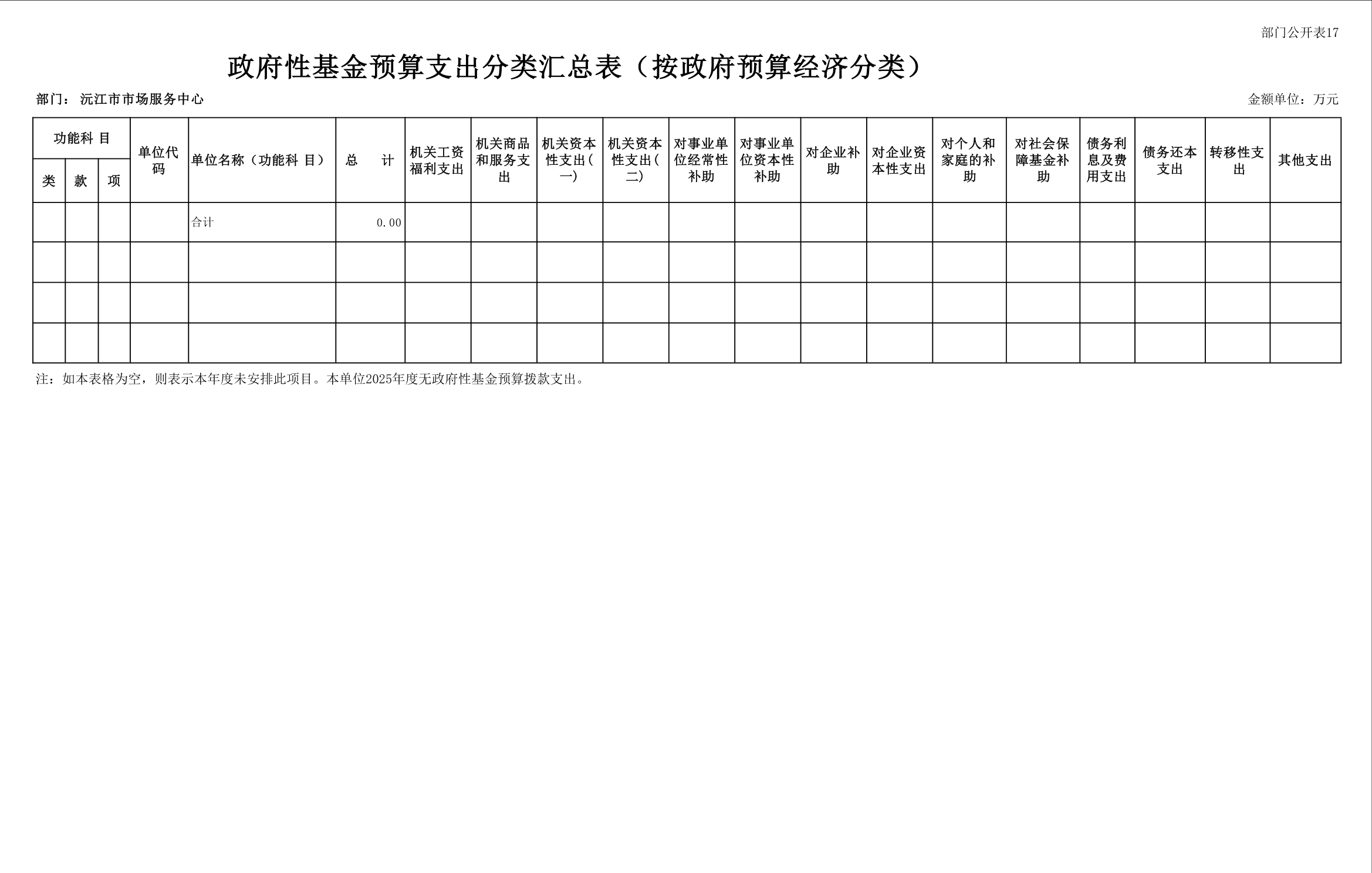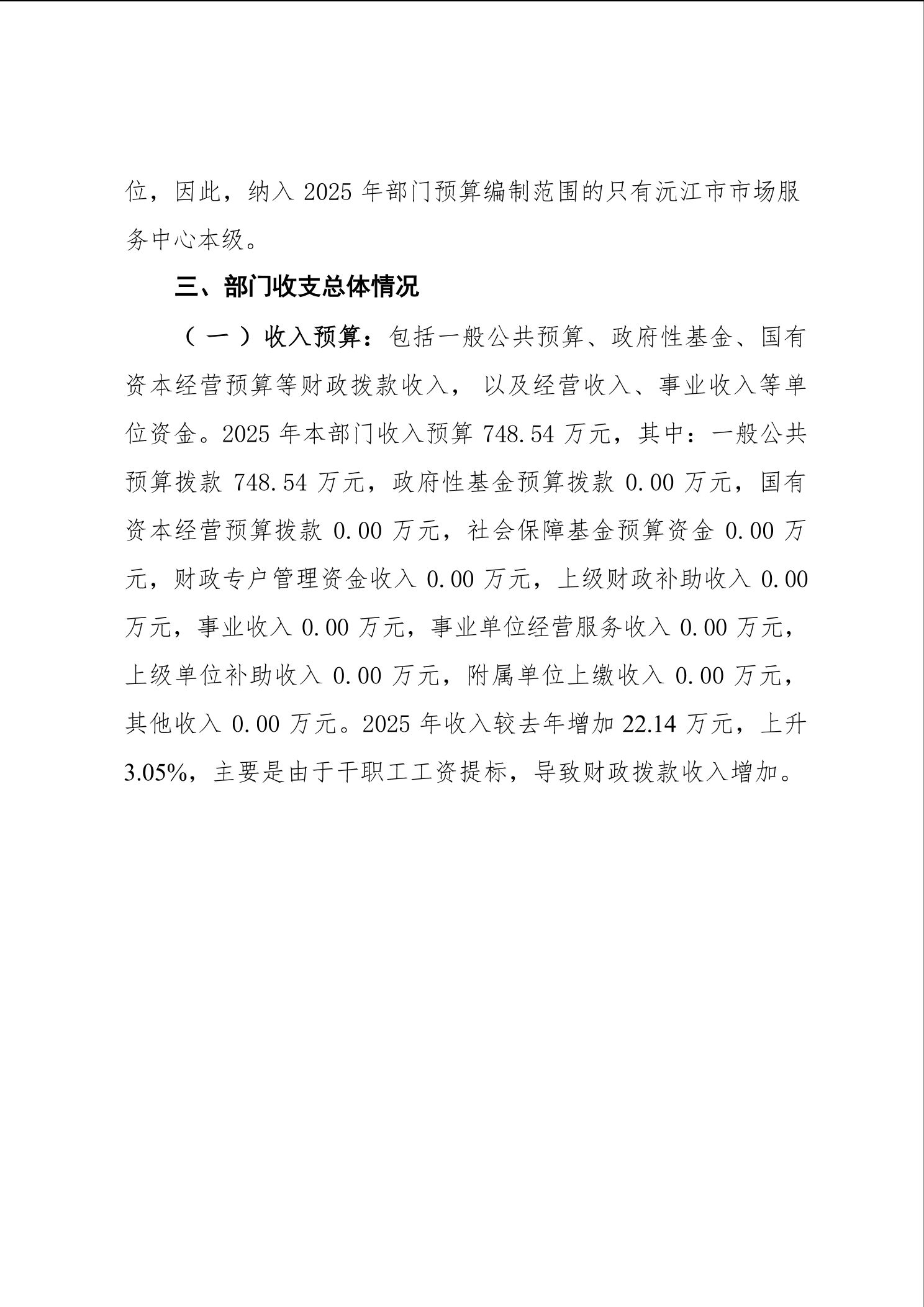 2025 年沅江市市场服务中心部门预算公开