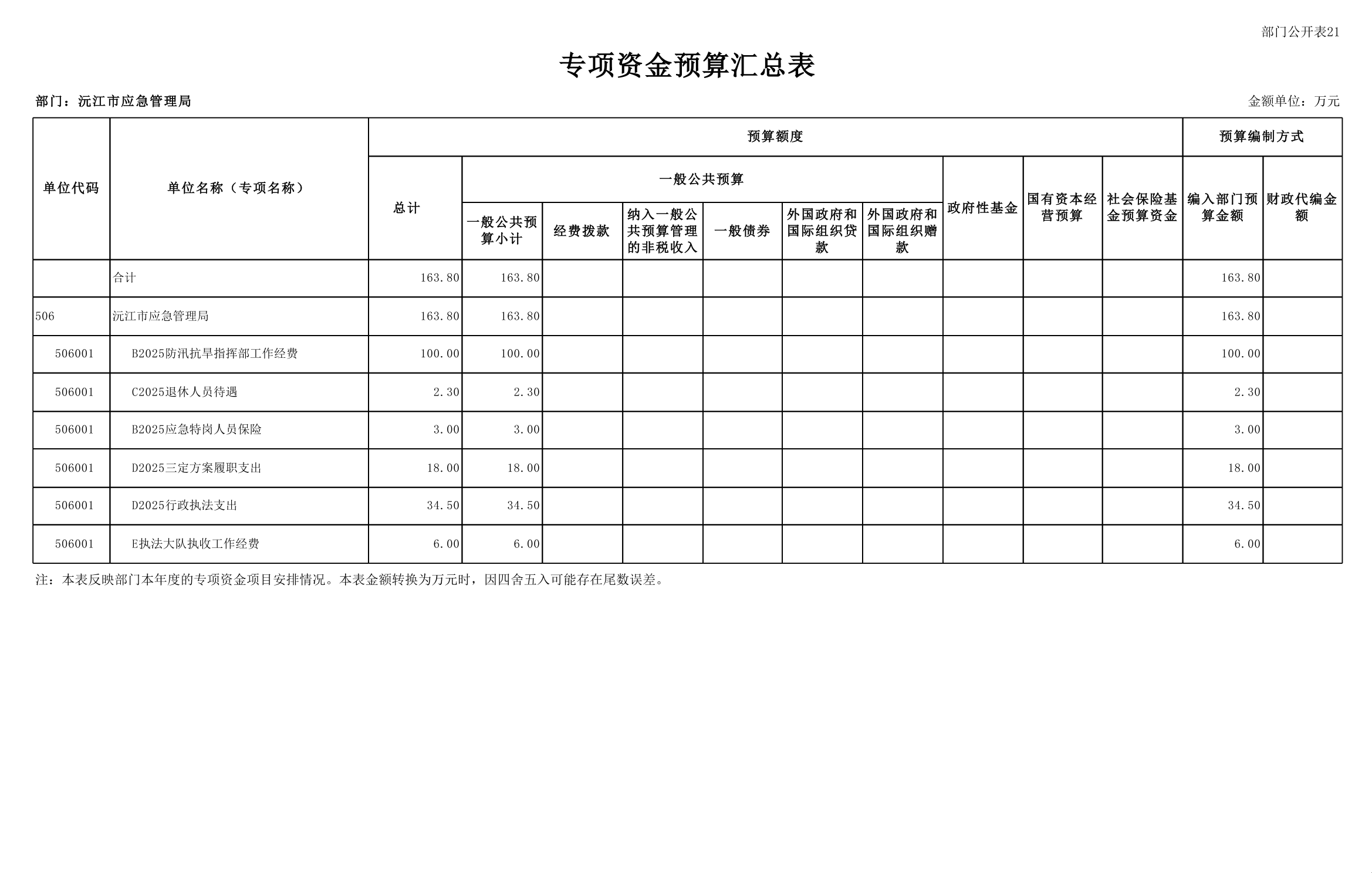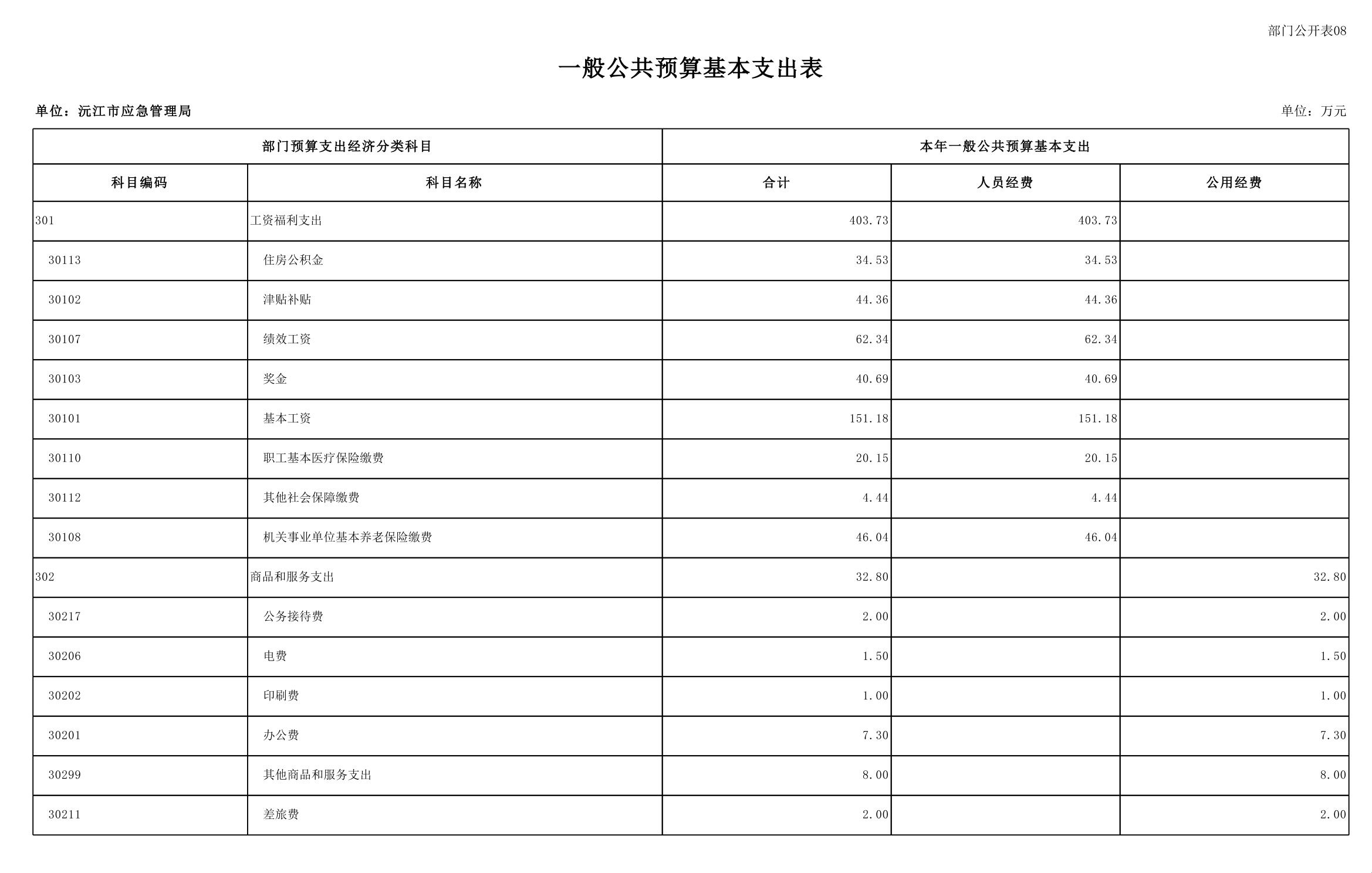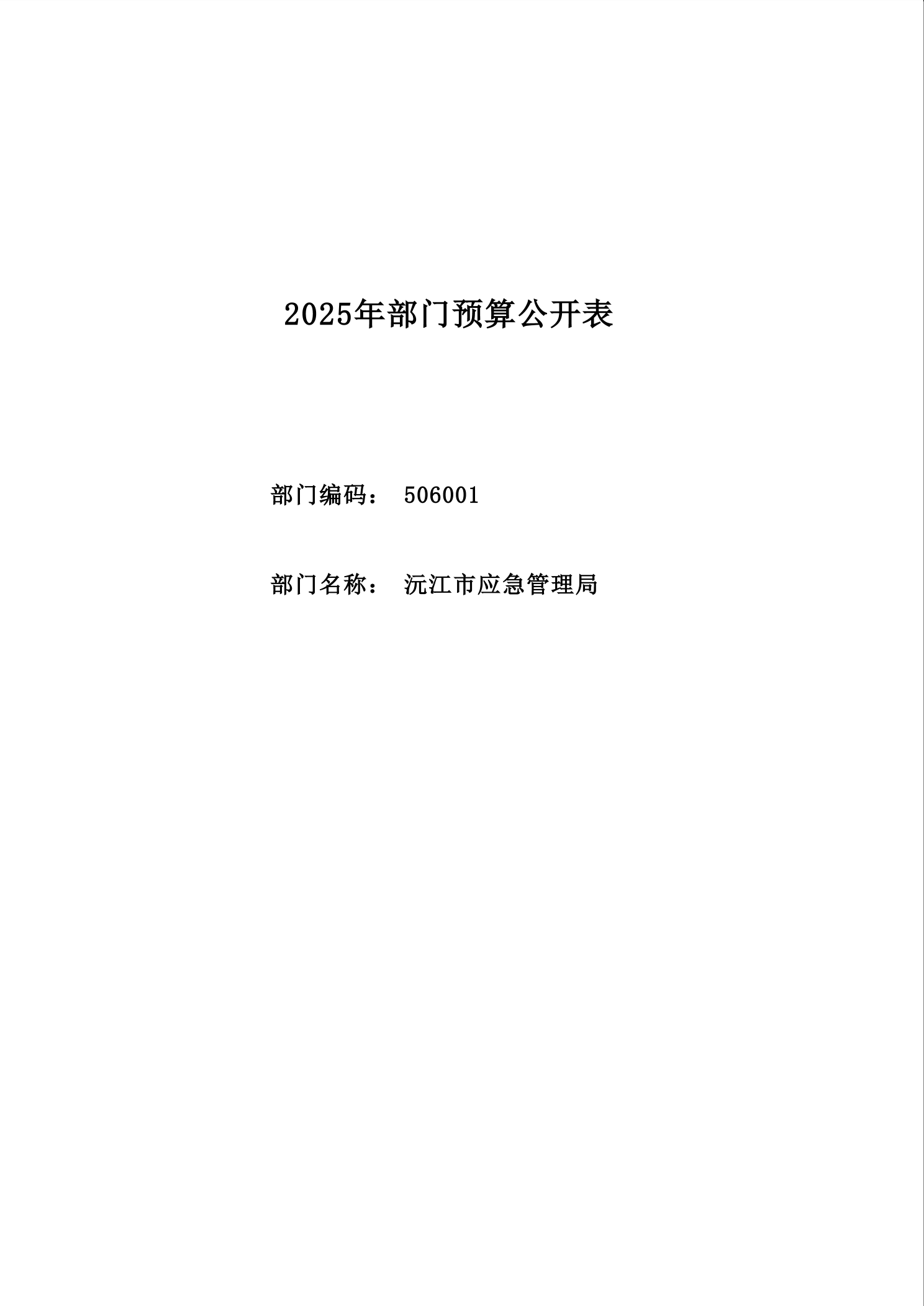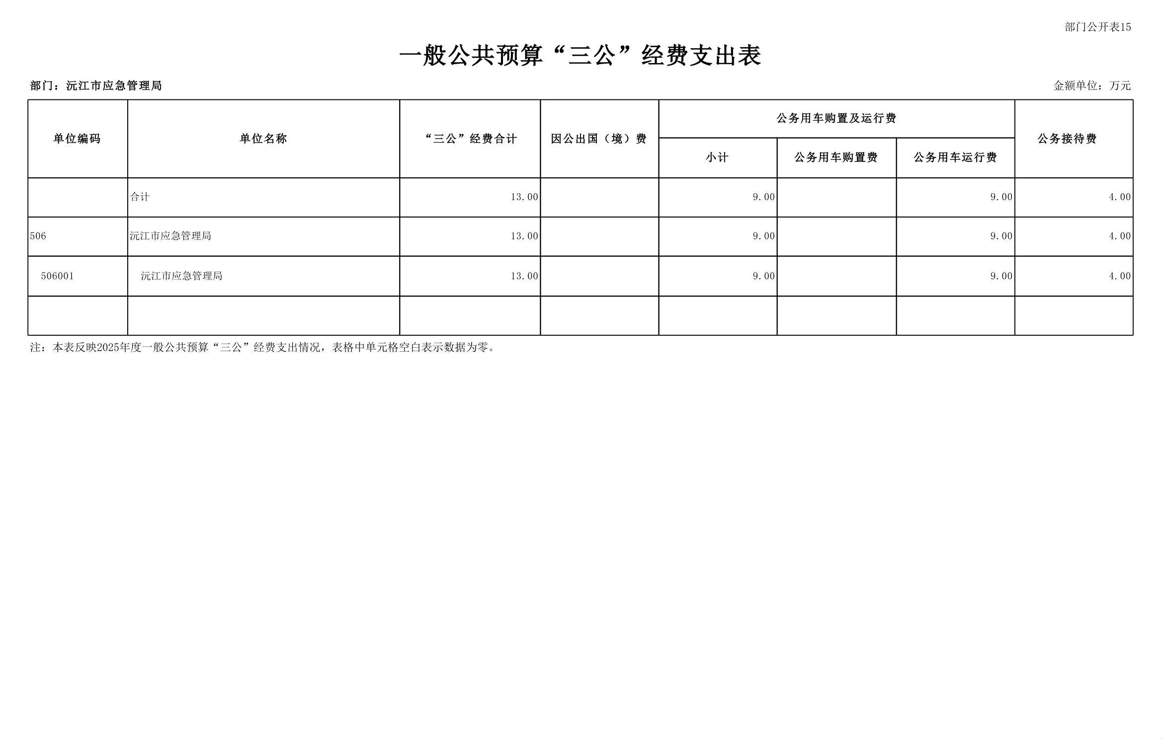 沅江市应急管理局2025年部门预算公开表