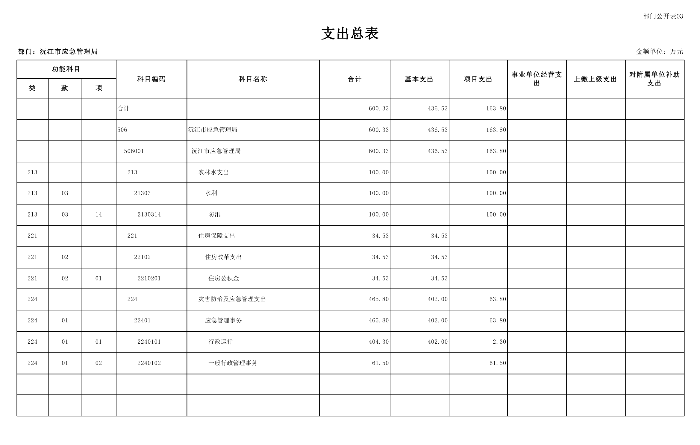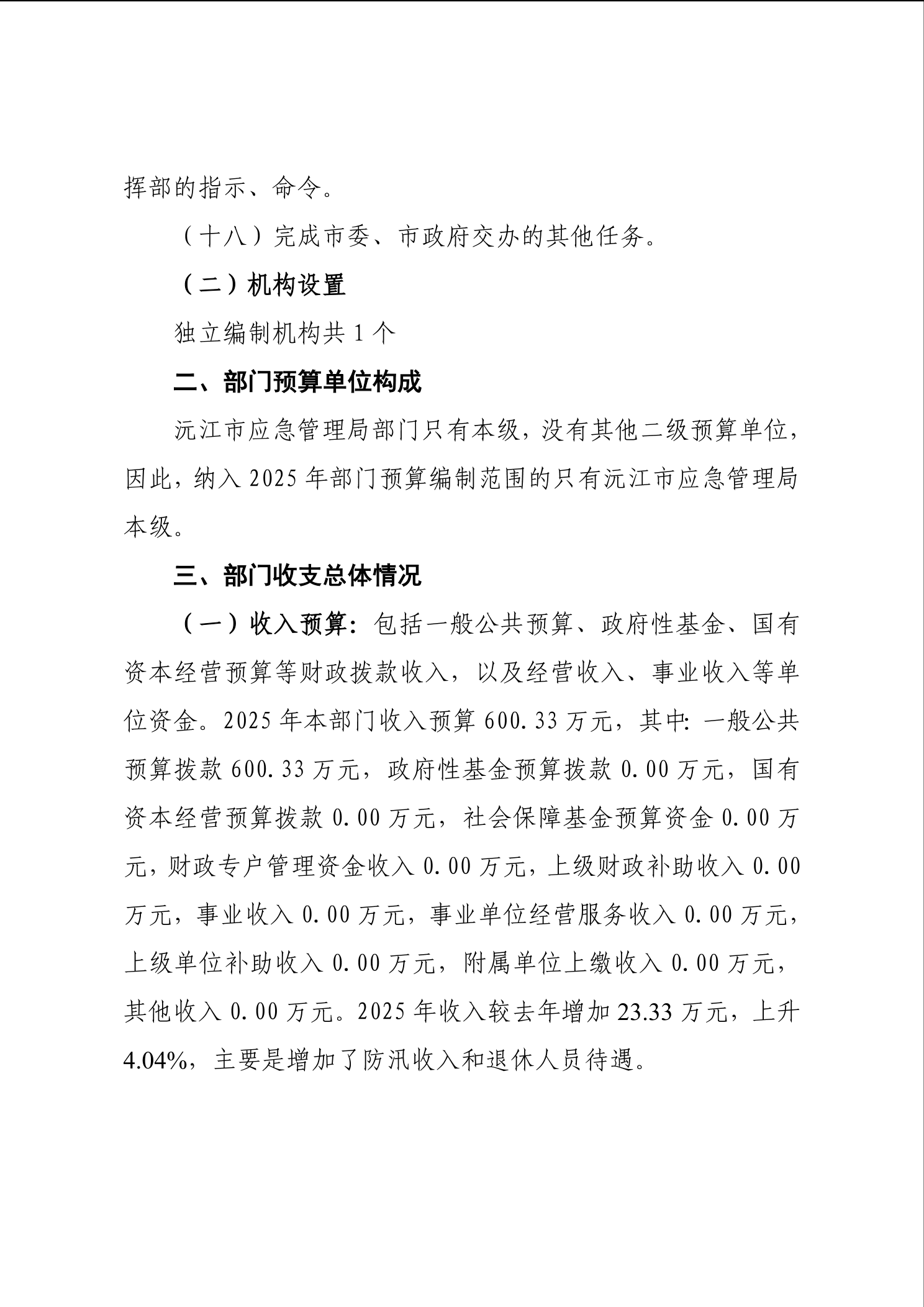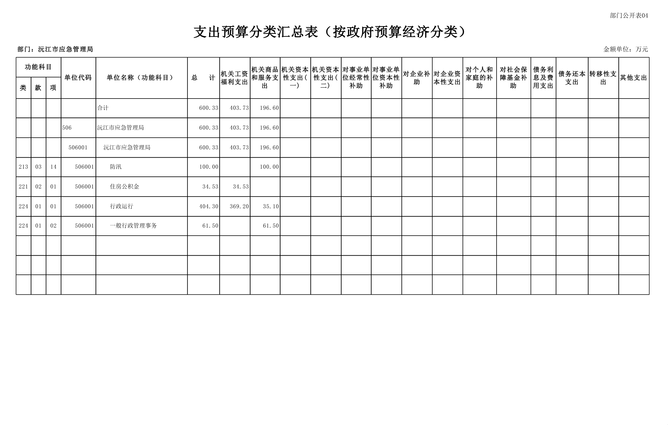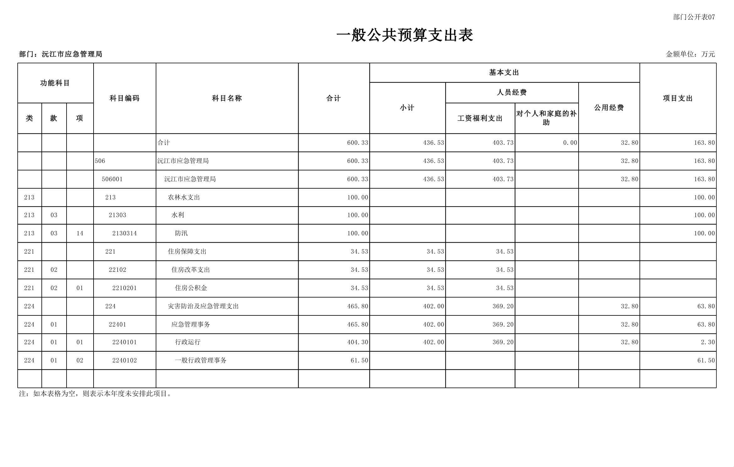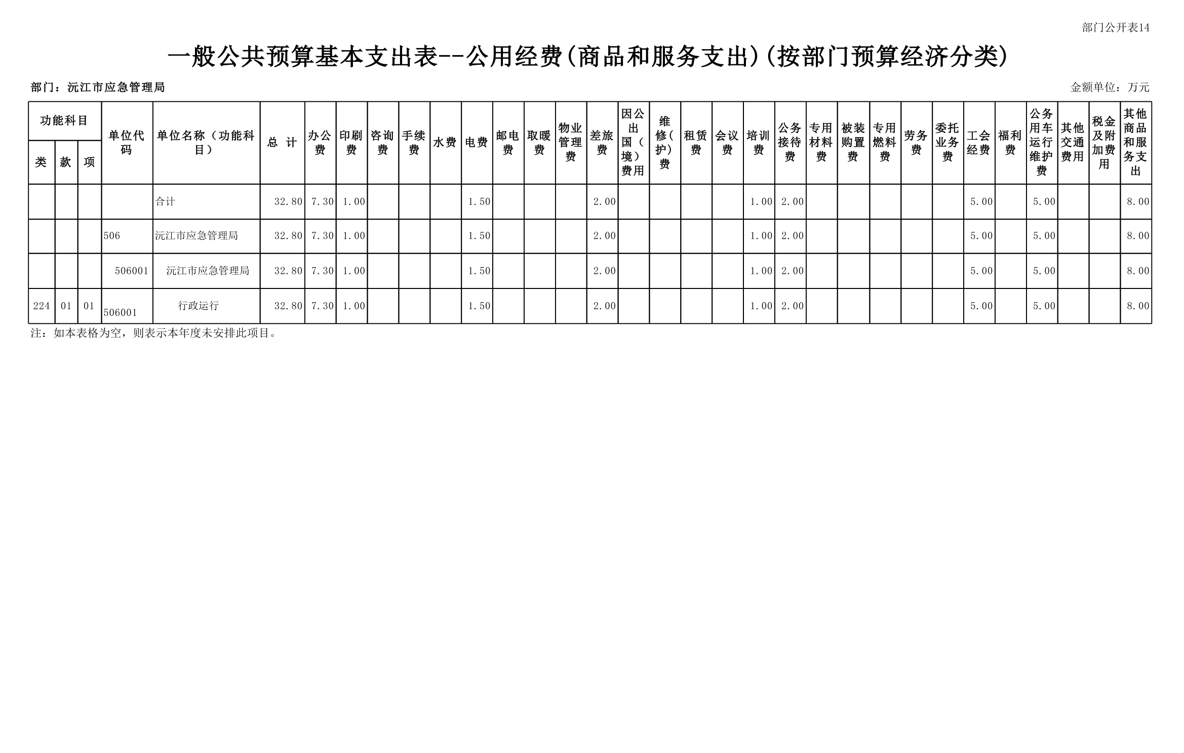 沅江市应急管理局2025年部门预算公开表