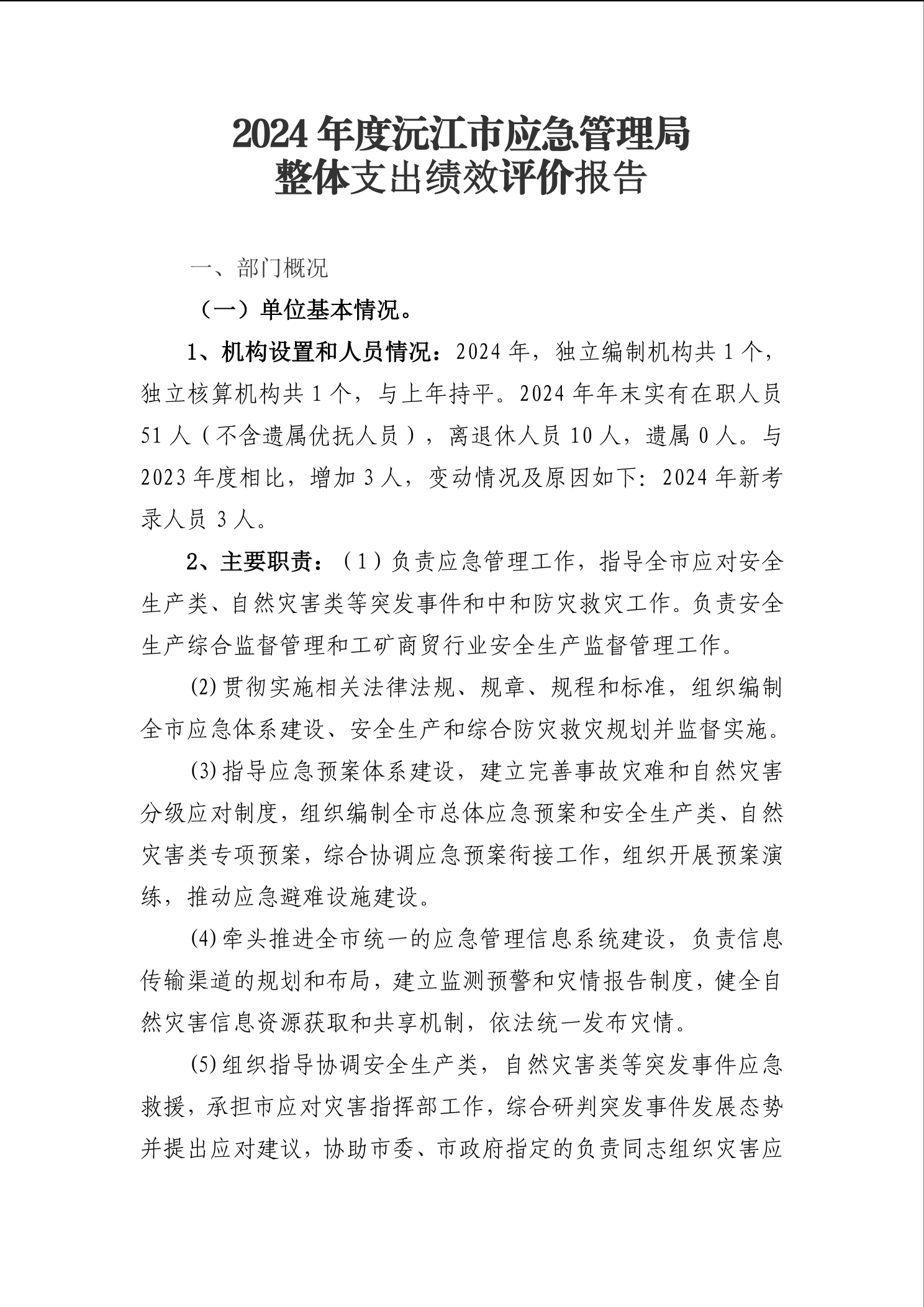2024年度沅江市应急管理局整体支出绩效评价报告