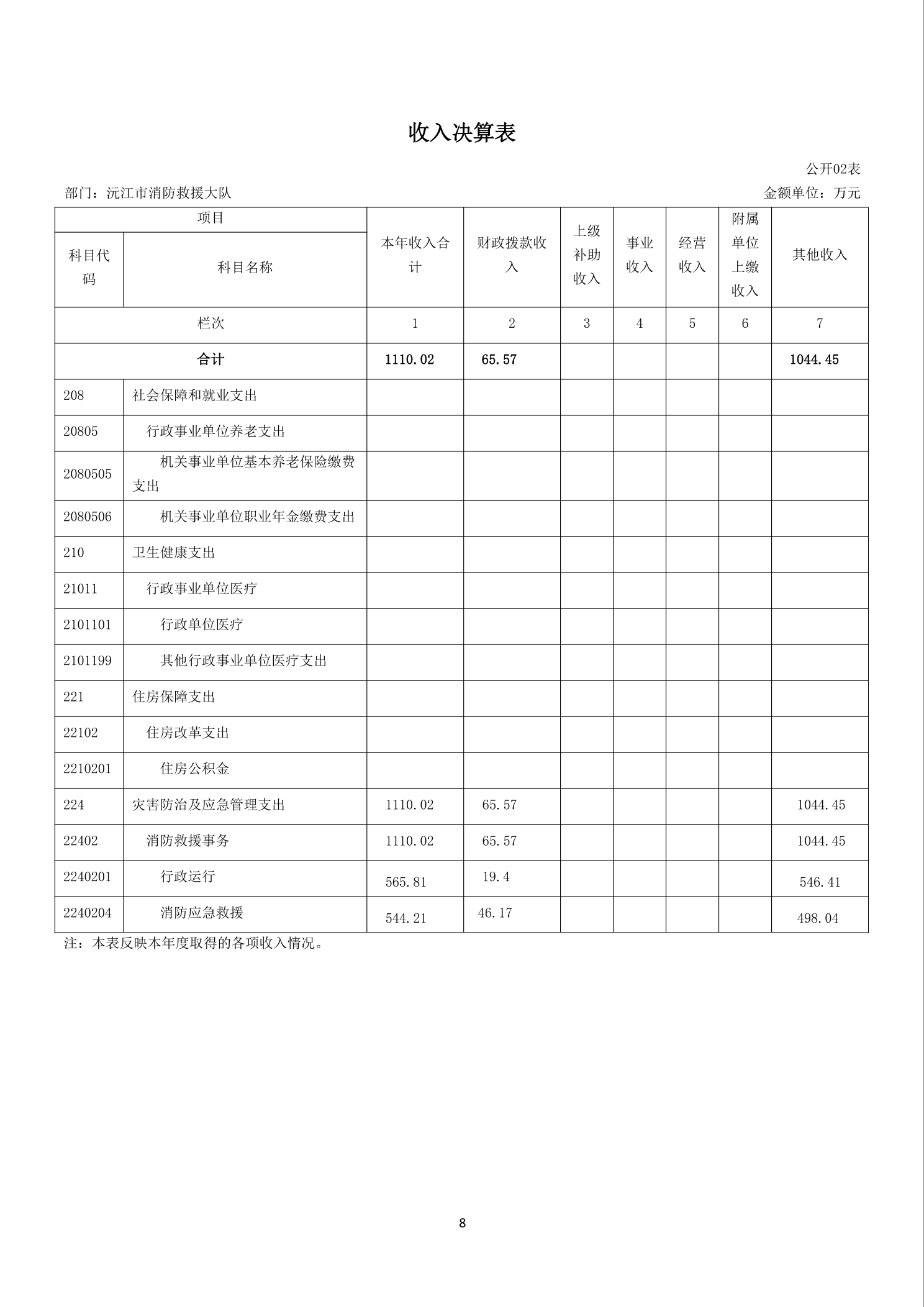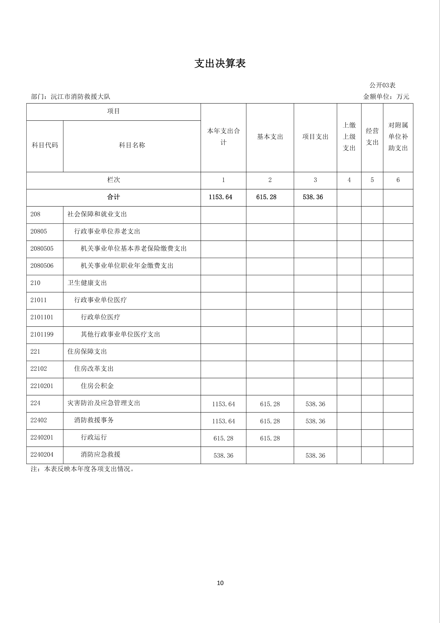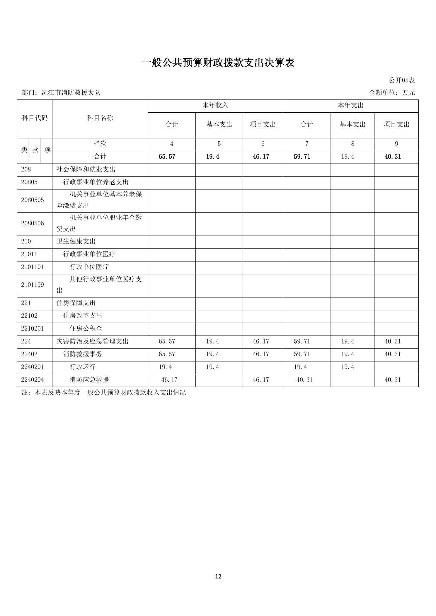 沅江市消防救援大队2024年度决算公开