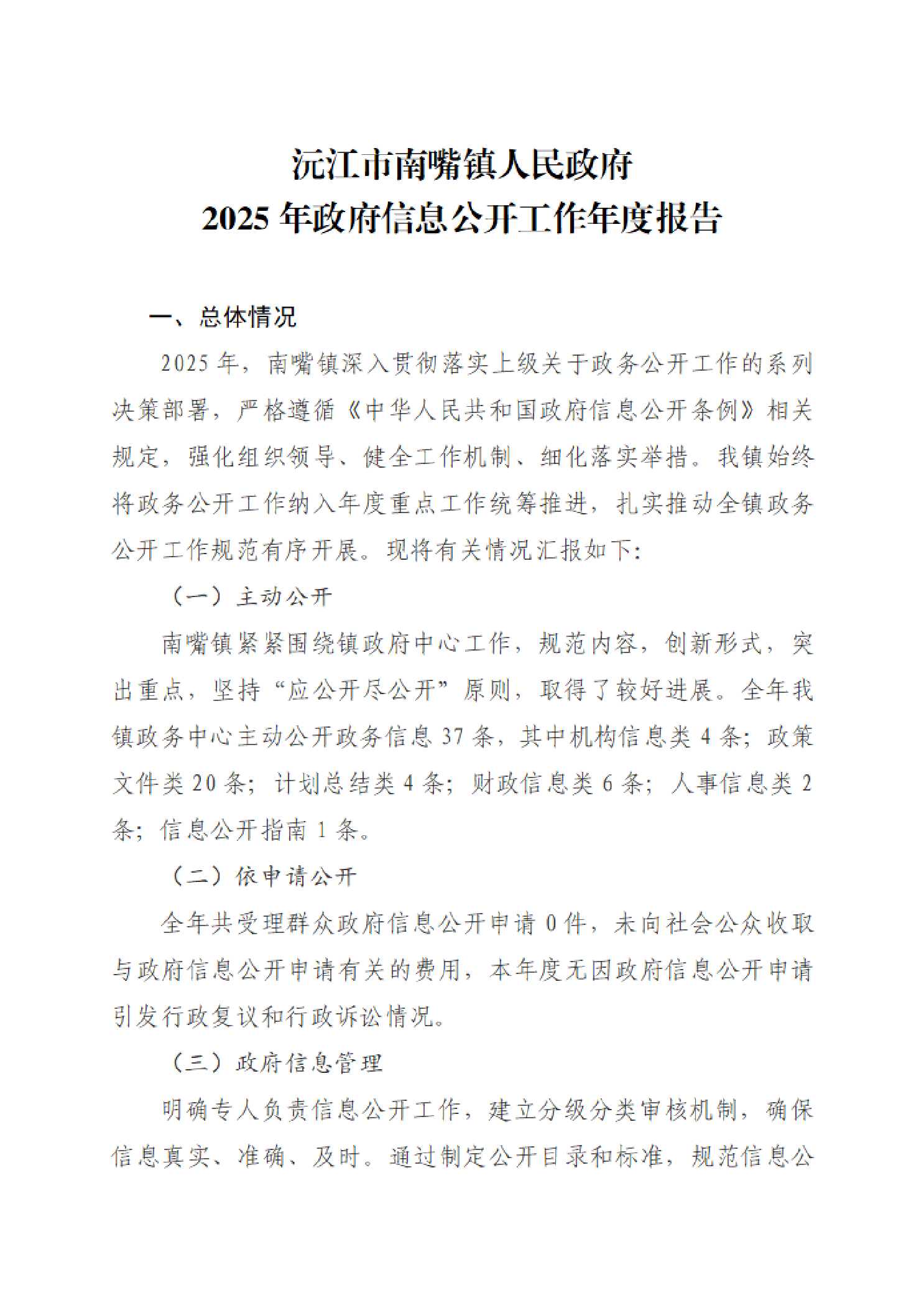 沅江市南嘴镇人民政府2025年政府信息公开工作年度报告