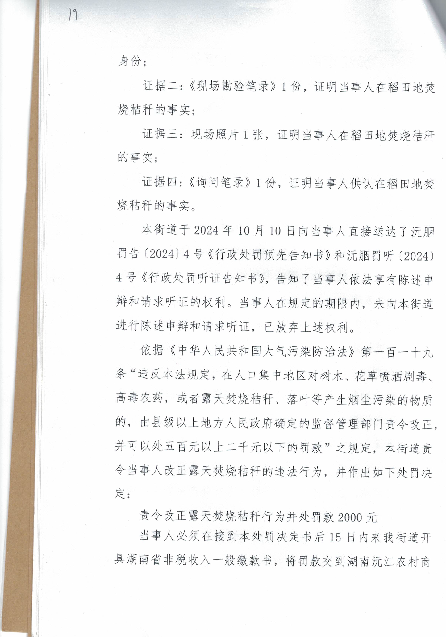 沅胭罚[2024]4号行政处罚决定书