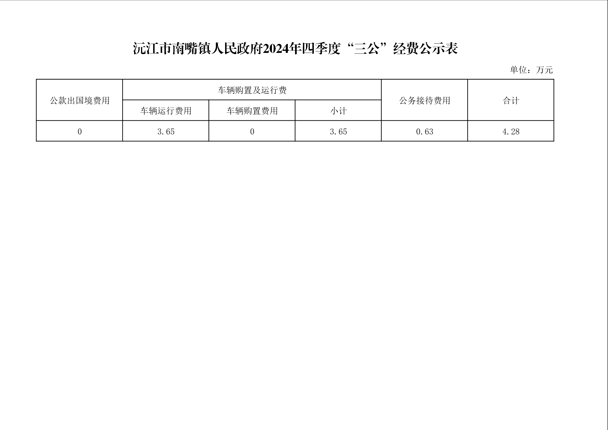 沅江市南嘴镇人民政府2024年四季度“三公”经费公示表