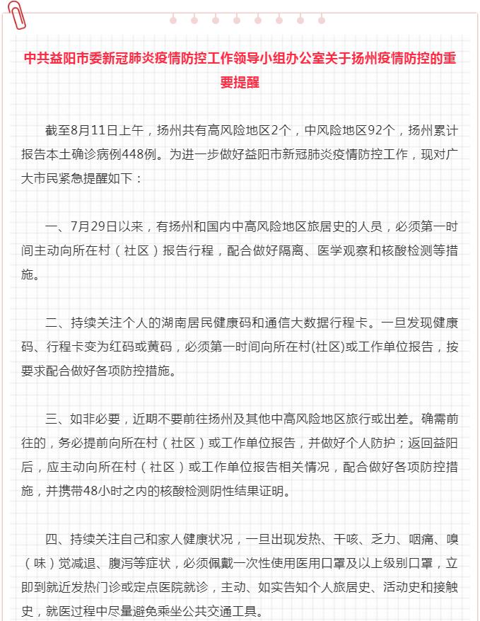 关于扬州疫情防控的重要提醒