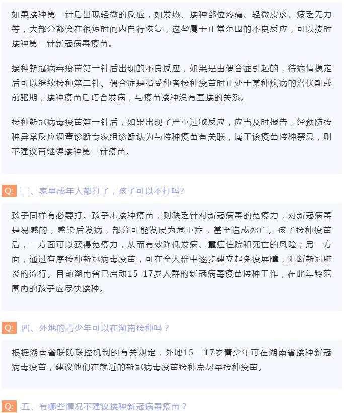 湖南疾控发布青少年接种新冠疫苗“十问十答”