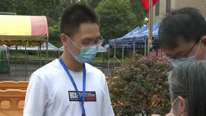 早上6点,90后的文星期就赶到了自己负责的岗位上,他的职责就是确保现场接种秩序,并为所有前来接种的市民提供力所能及的便利。作为琼湖街道办事处的一名普通办事员,他需要顶着烈日在这里值守超过9个小时,因为这就是他的责任。
