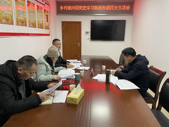 乡村振兴局对开好党史学习教育专题民主生活会高度重视。会前,制定了专题民主生活会方案,深入谈心谈话,广泛征求意见,扎实做好会前各项准备工作。会议上通报了2020年民主生活会问题整改落实情况,由刘密珍代表班子作对照检查发言,检视问题,剖析根源,制定整改措施。随后,党组成员逐一进行对照检查,严肃的开展了批评和自我批评。