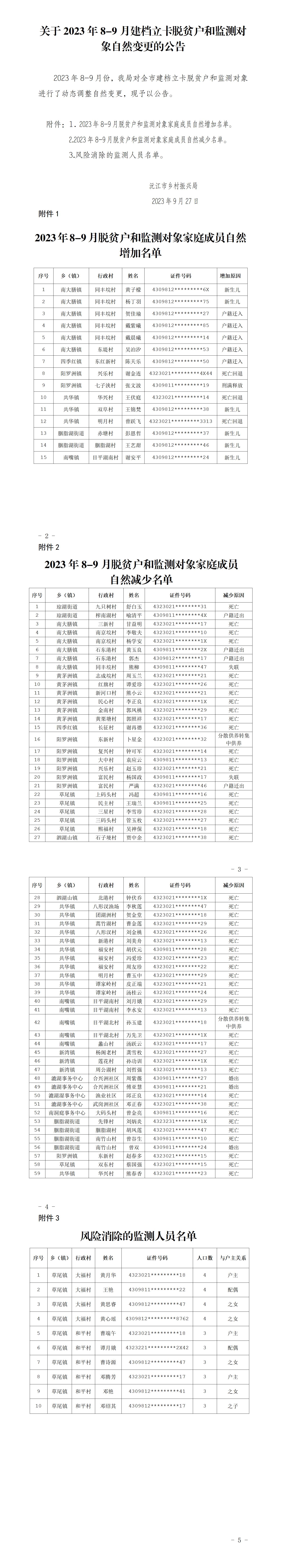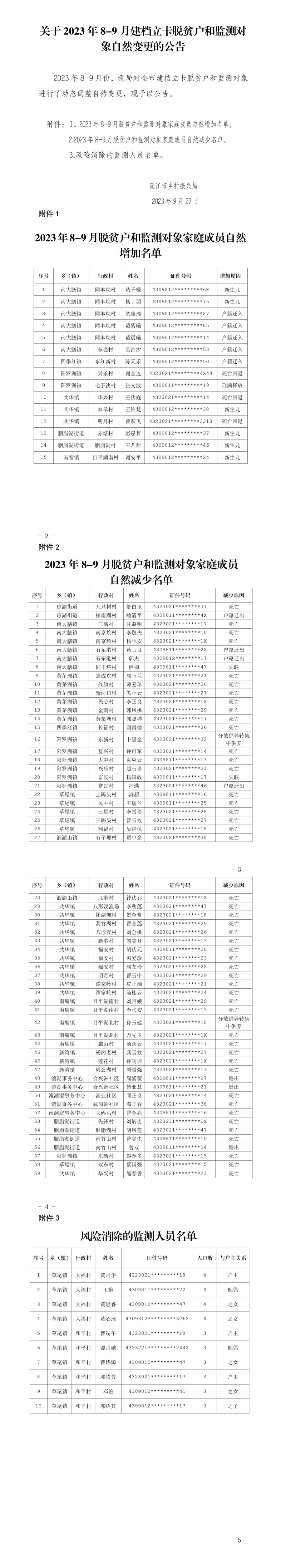 关于2023年8-9月建档立卡脱贫户和监测对象自然变更的公告