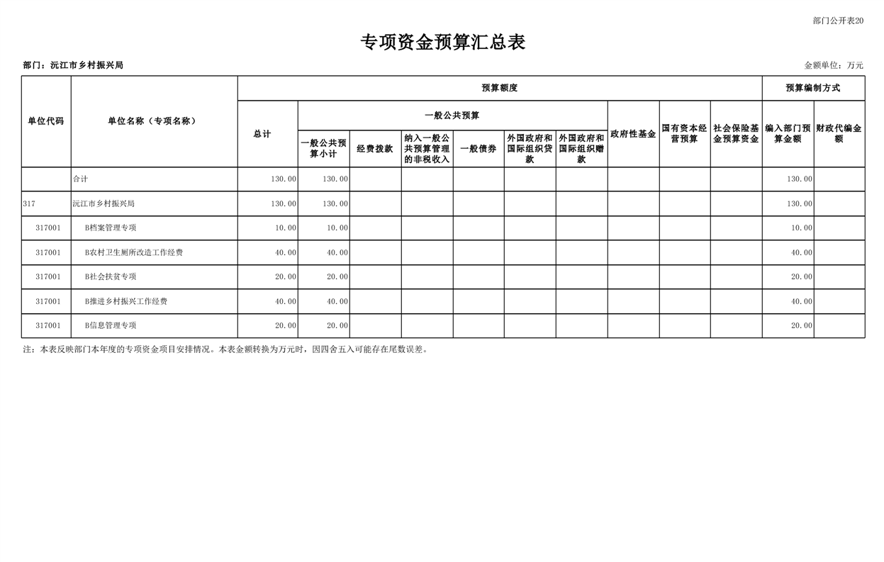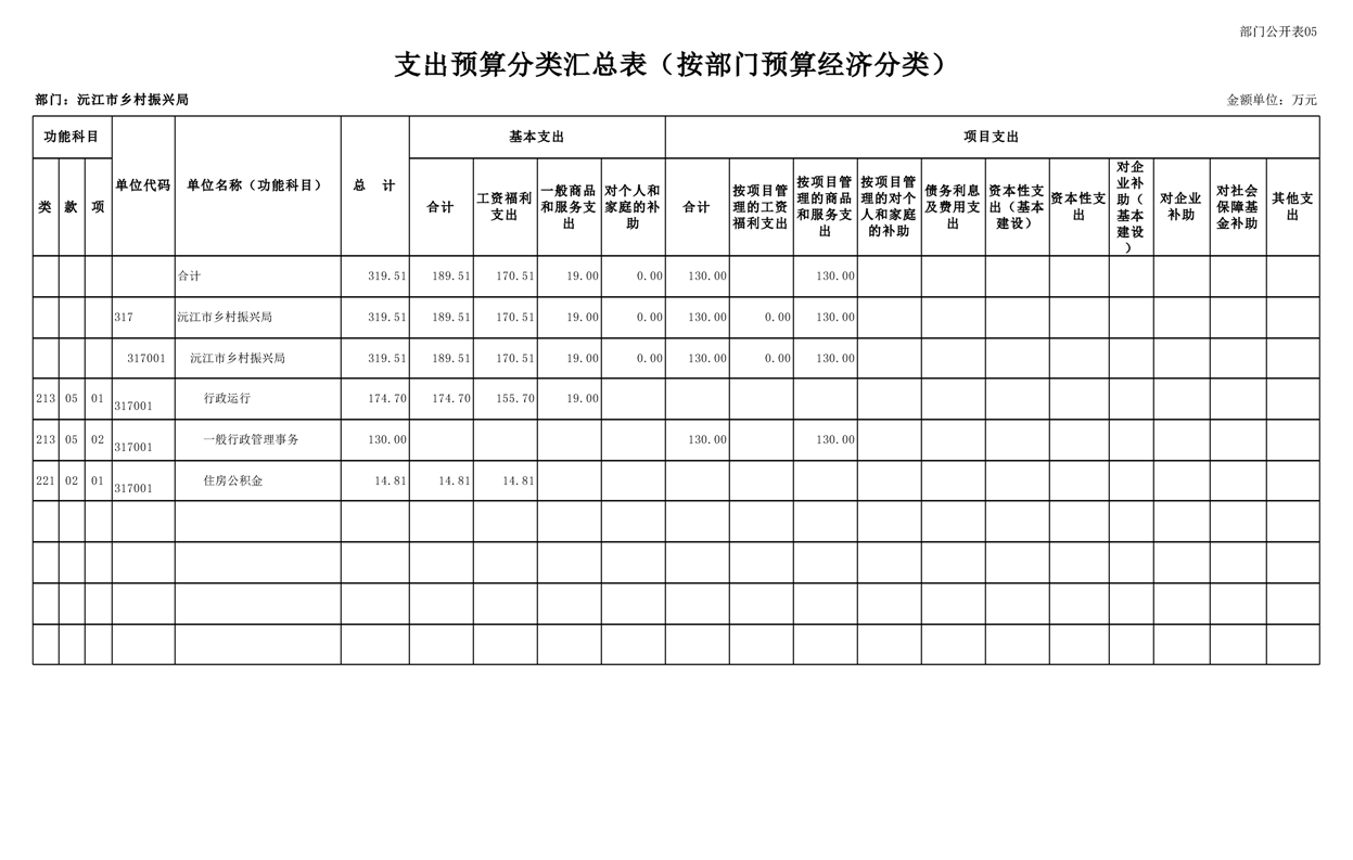 2023年沅江市乡村振兴局部门预算公开