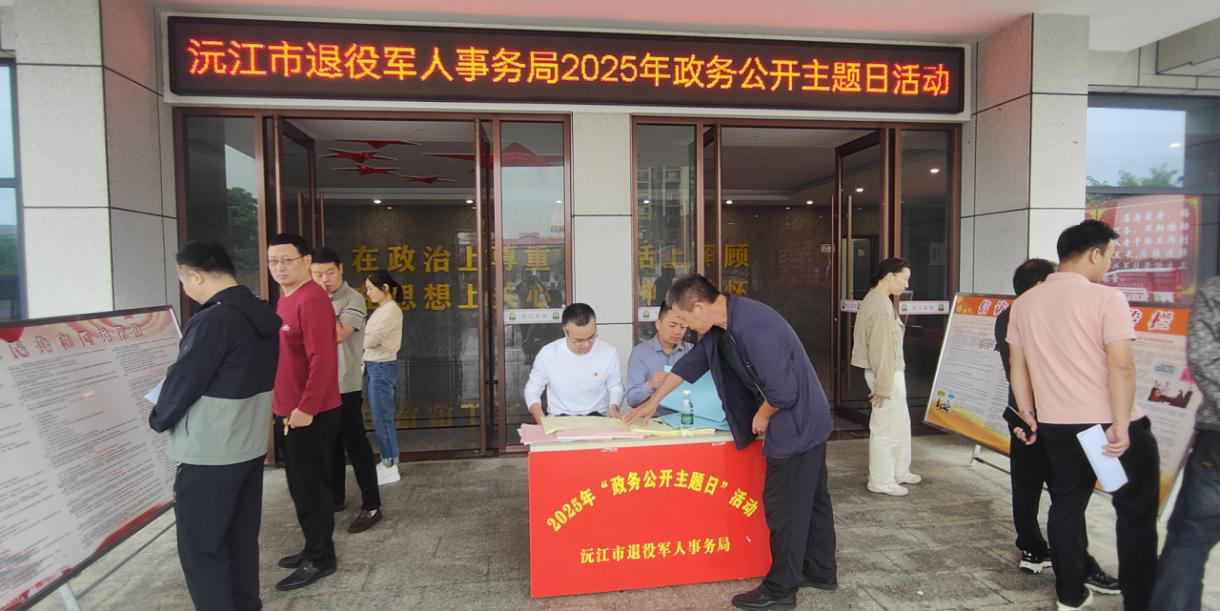 9月19日,沅江市退役军人事务局开展“政务公开日”活动,活动以“铭记历史珍视和平 真诚担当服务老兵”为主题。通过“政务公开日”活动,为全力夯实政务公开工作基础,持续推进基层政务公开标准化规范化工作,进一步发挥政务公开在行政决策科学化、民主化、法治化的推动作用,让广大退役军人通过政务公开了解退役军人事务工作,推进政务公开重点工作落实。