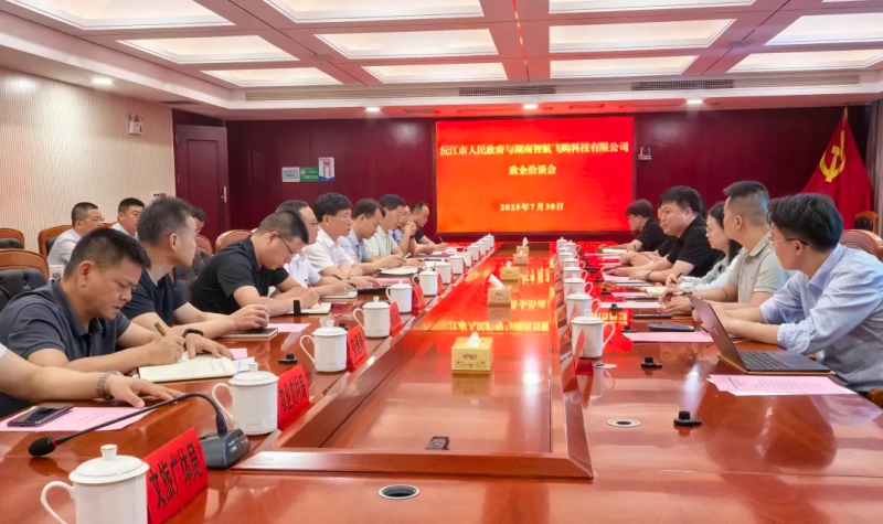 7月30日,湖南智航飞购科技有限公司董事长戴旺带队来沅考察洽谈。沅江市委书记杨智勇会见戴旺一行,市委副书记、市长罗必胜与戴旺举行政企洽谈会,围绕推动沅江低空经济发展进行深入交流并达成系列共识,市领导谢贵、雷亮,沅江高新区管委会主任梁成伟参加。