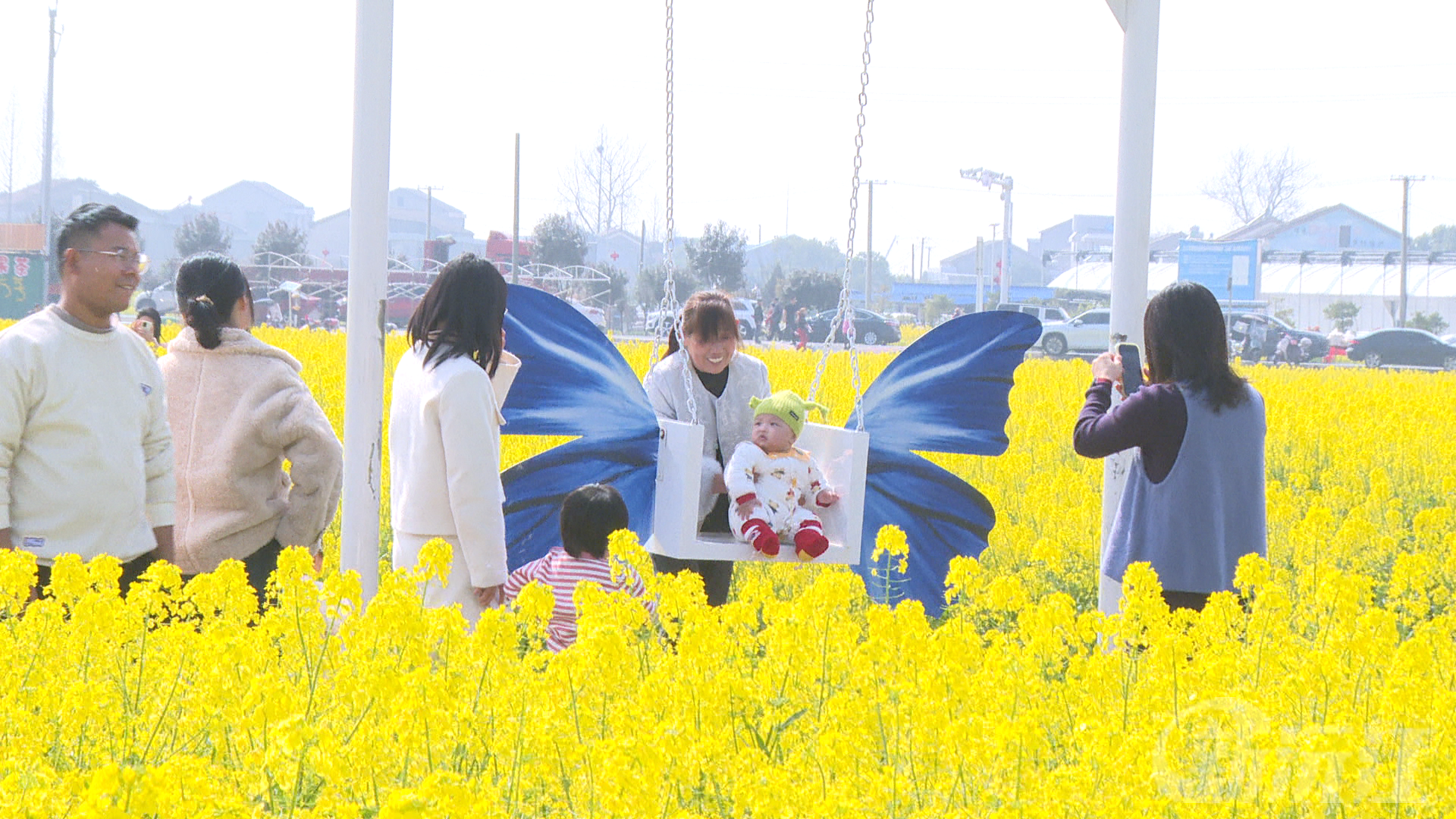 在油菜花期病虫害防控的关键时期,当地严格遵循“能避则避”原则,优先选用高效、低毒、低残留且对蜜蜂安全的农药,并将施药时间选择在蜜蜂活动较少的清晨或傍晚时段,最大限度地降低对蜜蜂等有益昆虫的影响,保障生态安全。科技的加持不仅守护了油菜的健康生长,也为当地带来了“美丽经济”。经过统防统治的保民村3000亩油菜花海,吸引了四里八乡的游客前来打卡赏花。游客们或乘车观景,或在花海中翩翩起舞,感受着春日的美好时光。