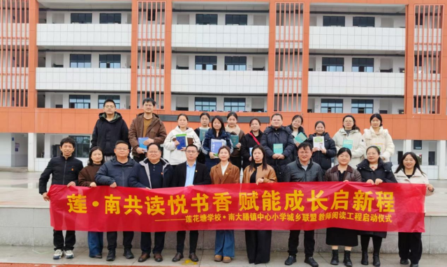 同时,两校同步启动“莲·南共读”教师阅读工程,通过赠书、共读倡议书等形式,号召全体教师以阅读丰盈教育内涵,以文化滋养教育灵魂。在交流研讨环节,两校教师围绕高效课堂实践、阅读工程落地等议题深入探讨,凝聚发展共识。活动最后,全体与会人员合影留念,为本次活动画上圆满句号。