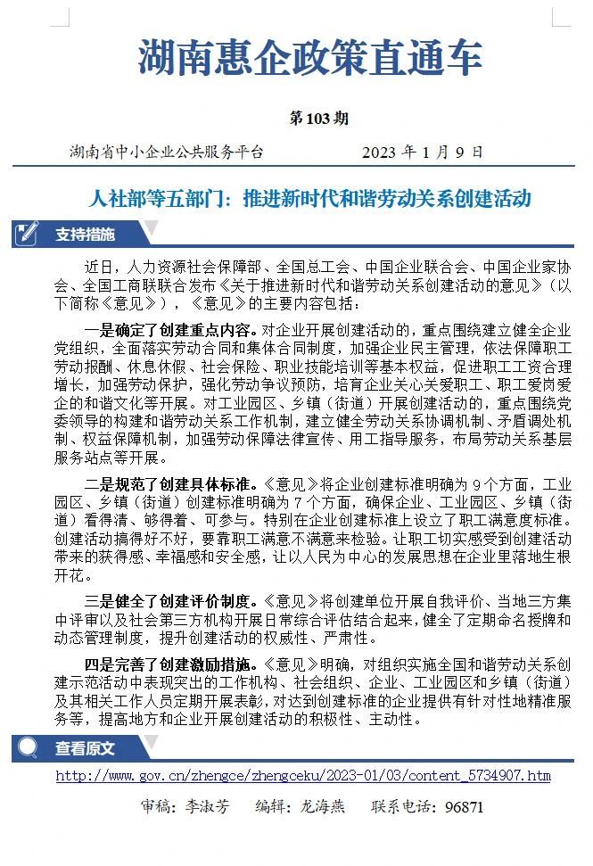 人社部等五部门:推进新时代和谐劳动关系创建活动