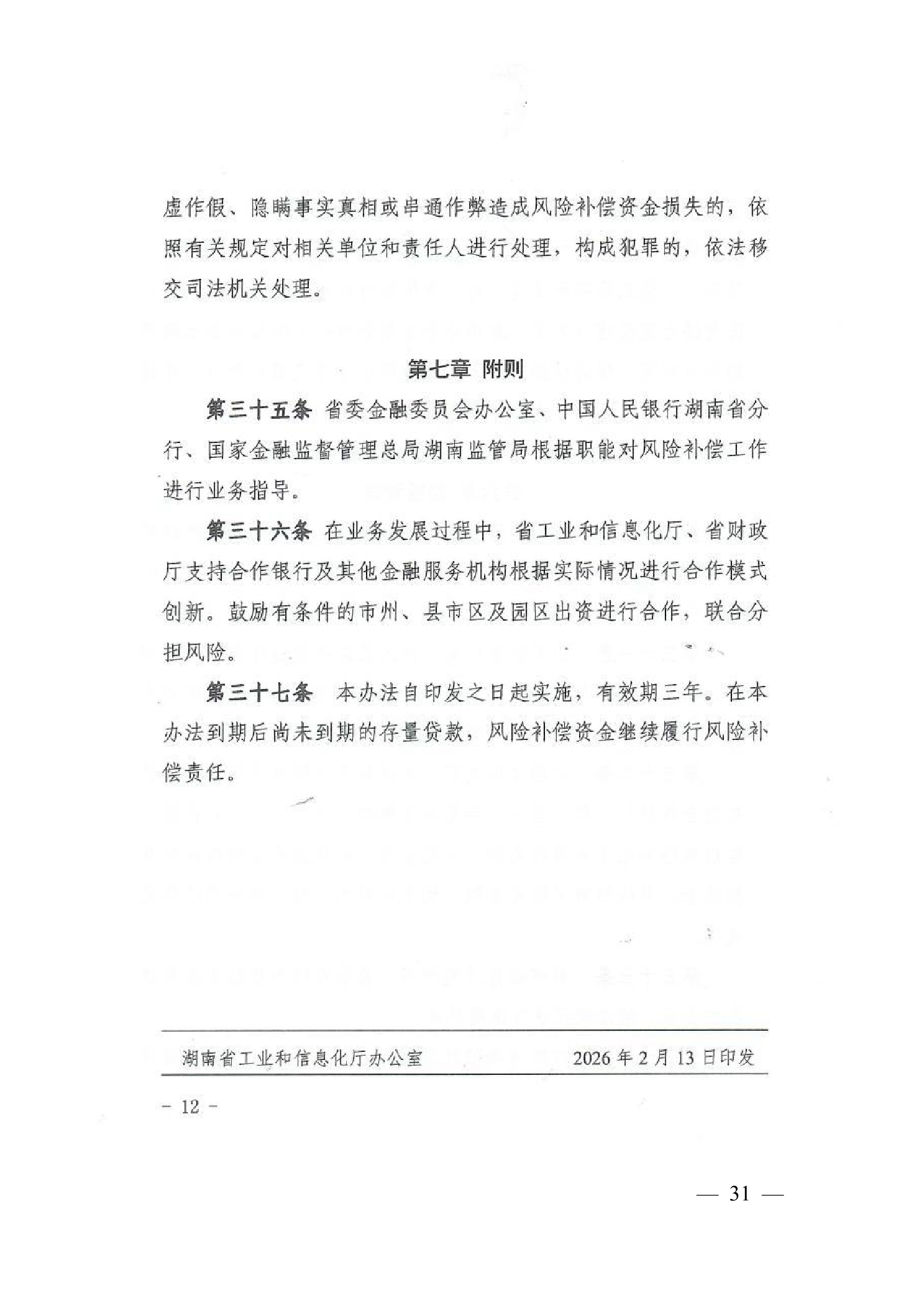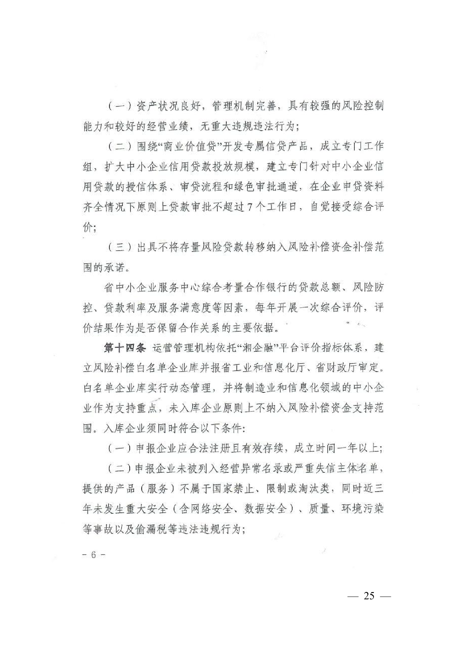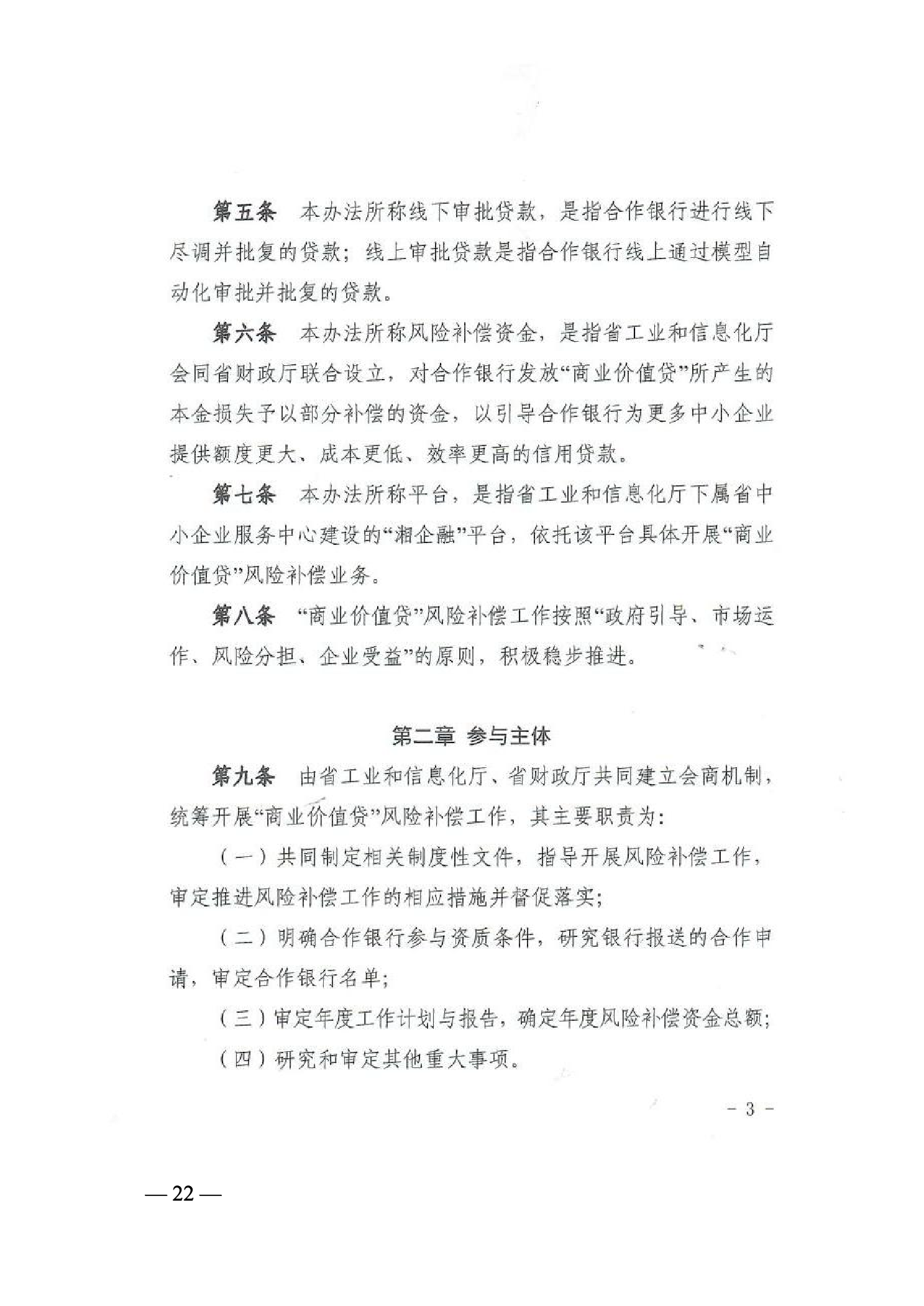 4、湖南省工业和信息化厅 湖南省财政厅关于印发《湖南省中小企业商业价值信用贷款风险补偿实施办法》的通知 30