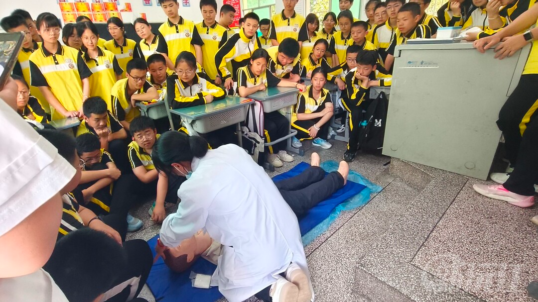 活动现场,医护人员以一段段触目惊心的溺水事故视频为切入点,结合真实案例剖析,直观展现溺水危害,敲响安全警钟。在心肺复苏实操教学环节,专业医生携带模拟道具,从判断意识、清理口腔异物到胸外按压、人工呼吸,分步拆解溺水急救流程,边演示边强调“黄金四分钟”抢救原则。学生们围聚在操作台前,紧盯每个动作细节,求知目光中满是对生命救援技能的渴望。