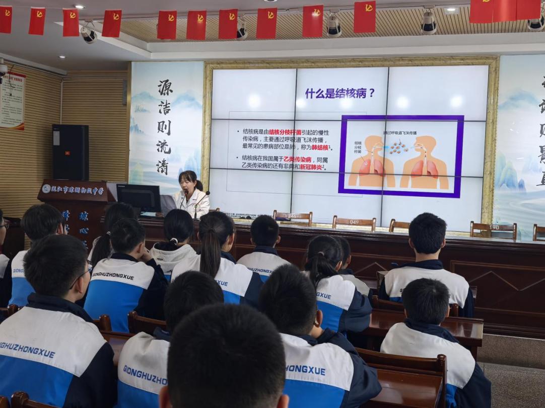 与此同时,琼湖中学的校园宣传活动有序推进。市人民医院感染科专家结合青少年身心特点,通过趣味问答、案例分析等形式,生动讲解结核病对青少年健康的危害,怎样加强体育锻炼,提升自身免疫力等关键措施,全方位普及校园防控知识。