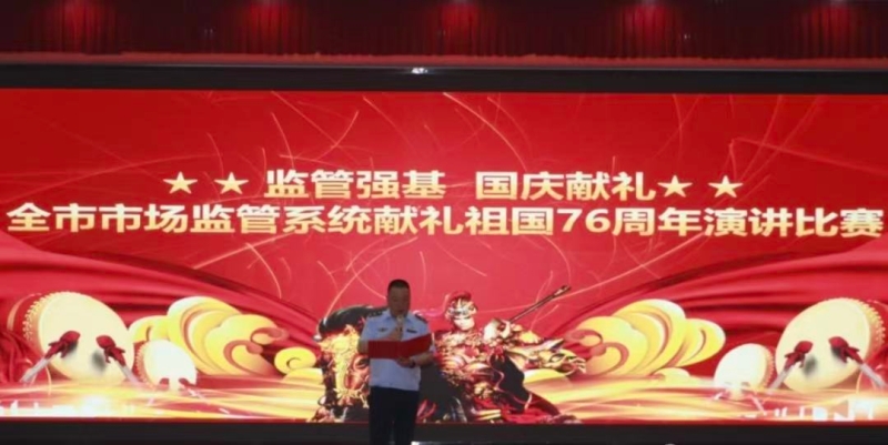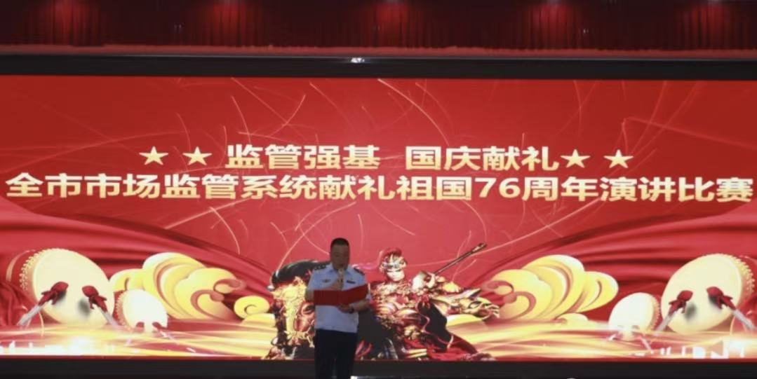 迎国庆,忆风雨同舟。自市监这个大家庭正式组建,我们便以守护市场秩序为责,以服务群众需求为任。从机构整合打造协同发力的“大精兵队伍”,到职能融合实现生产、流通、消费、维权全链条“大市场监管”;从烈日下排查安全隐患,到寒风中整治市场乱象,我们始终与祖国繁荣昌盛同频共振。用每一次严格监管、每一次贴心服务,为经济发展筑牢安全防线,为民生幸福添砖加瓦,这是我们市监人对祖国最质朴的告白。且持梦笔书奇景,日破云涛万里红。今天的演讲比赛,是一场知识与情感交织的盛会。站在这个舞台上,各位选手将讲述我们身边的监管故事:或许是守护舌尖安全的日夜坚守,或许是化解消费纠纷的耐心细致,或许是助力企业发展的主动作为……这些故事里,有我们的责任与担当,更有我们对祖国蒸蒸日上的美好期盼。我希望大家能以演讲为桥,传递市监声音;以真情为笔,书写爱国情怀,真正赛出市监人的风采、赛出新时代奋斗者的精气神!